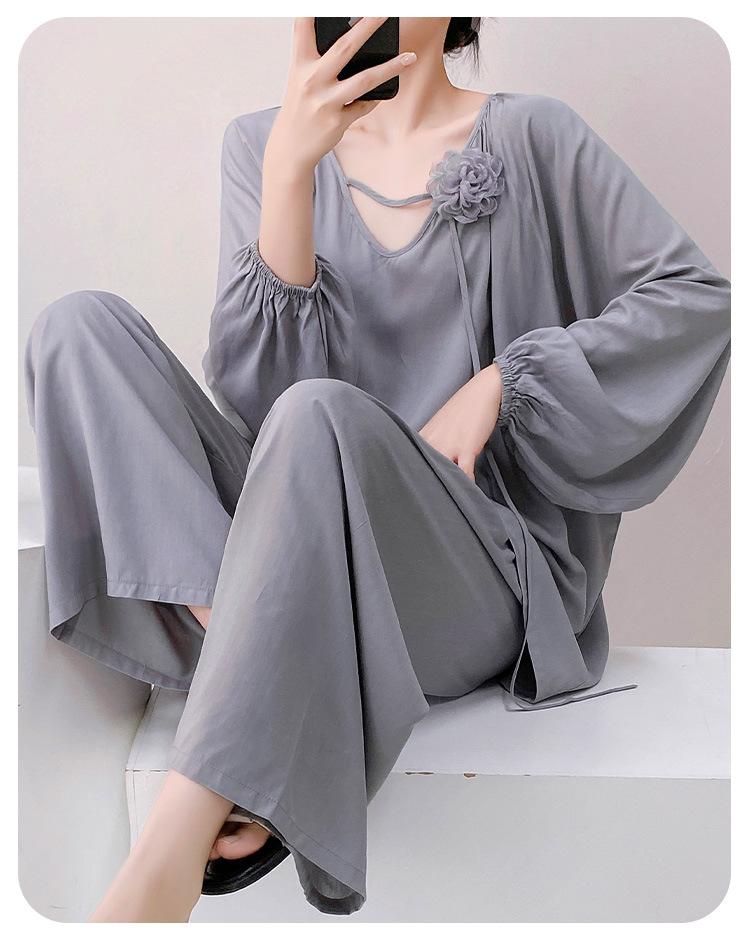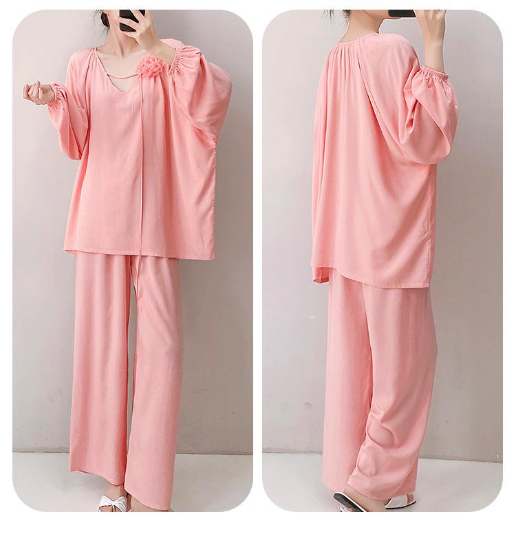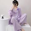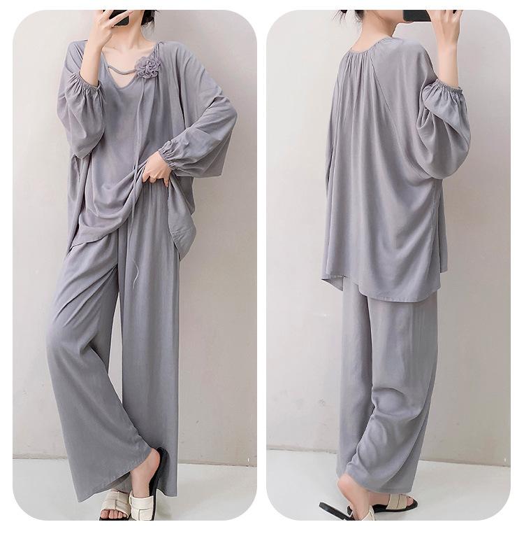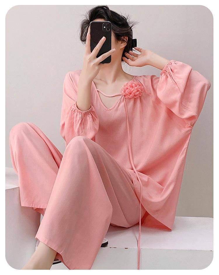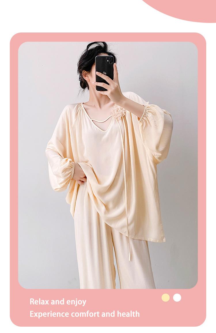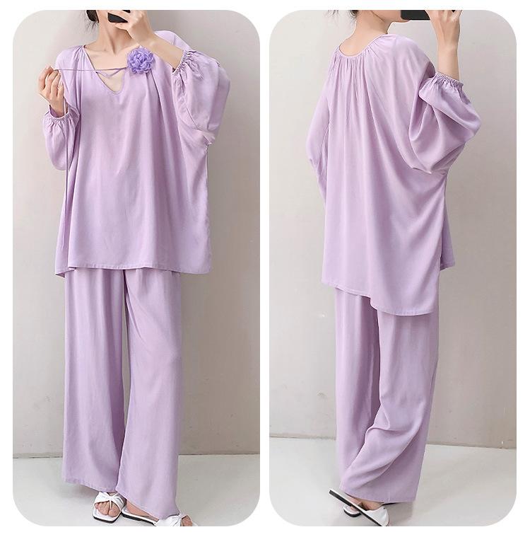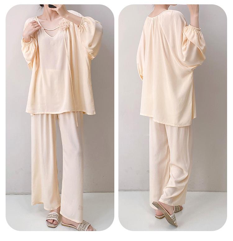 Pijama de seda de color liso estilo zen para mujer, novedad primavera-verano 2025, de manga larga, holgado, de algodón y seda, para el hogar, talla grande