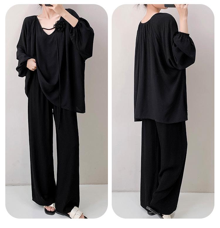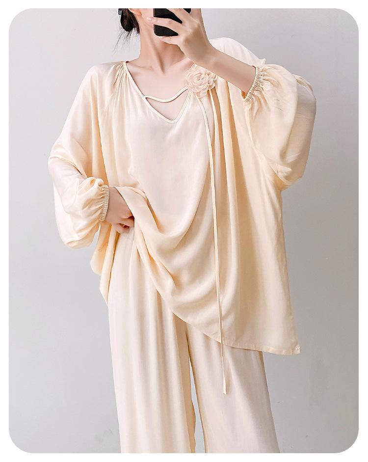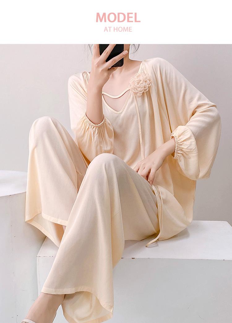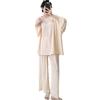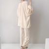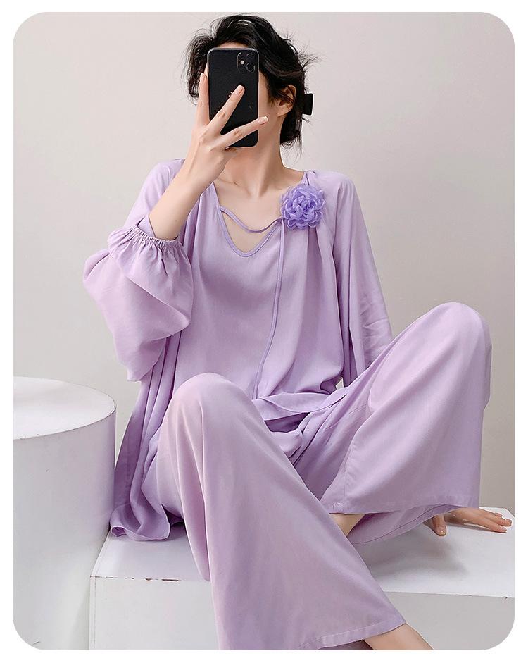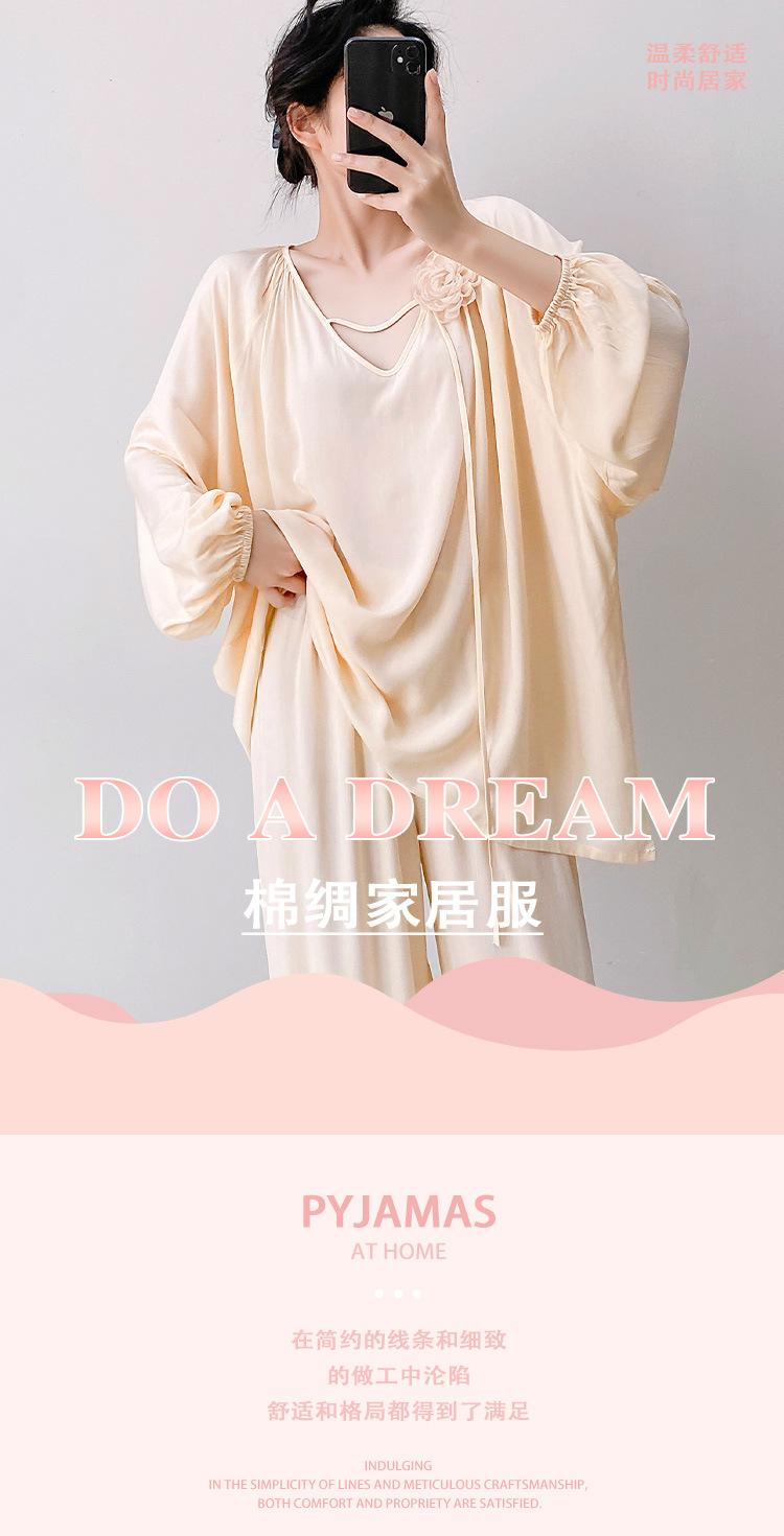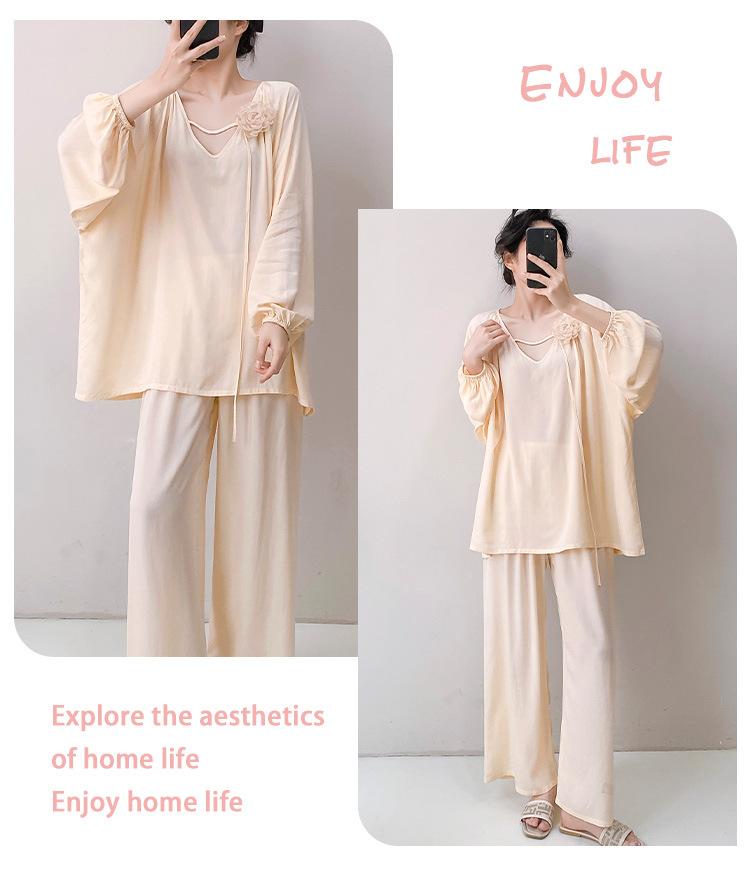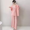 Pijama de seda de color liso estilo zen para mujer, novedad primavera-verano 2025, de manga larga, holgado, de algodón y seda, para el hogar, talla grande