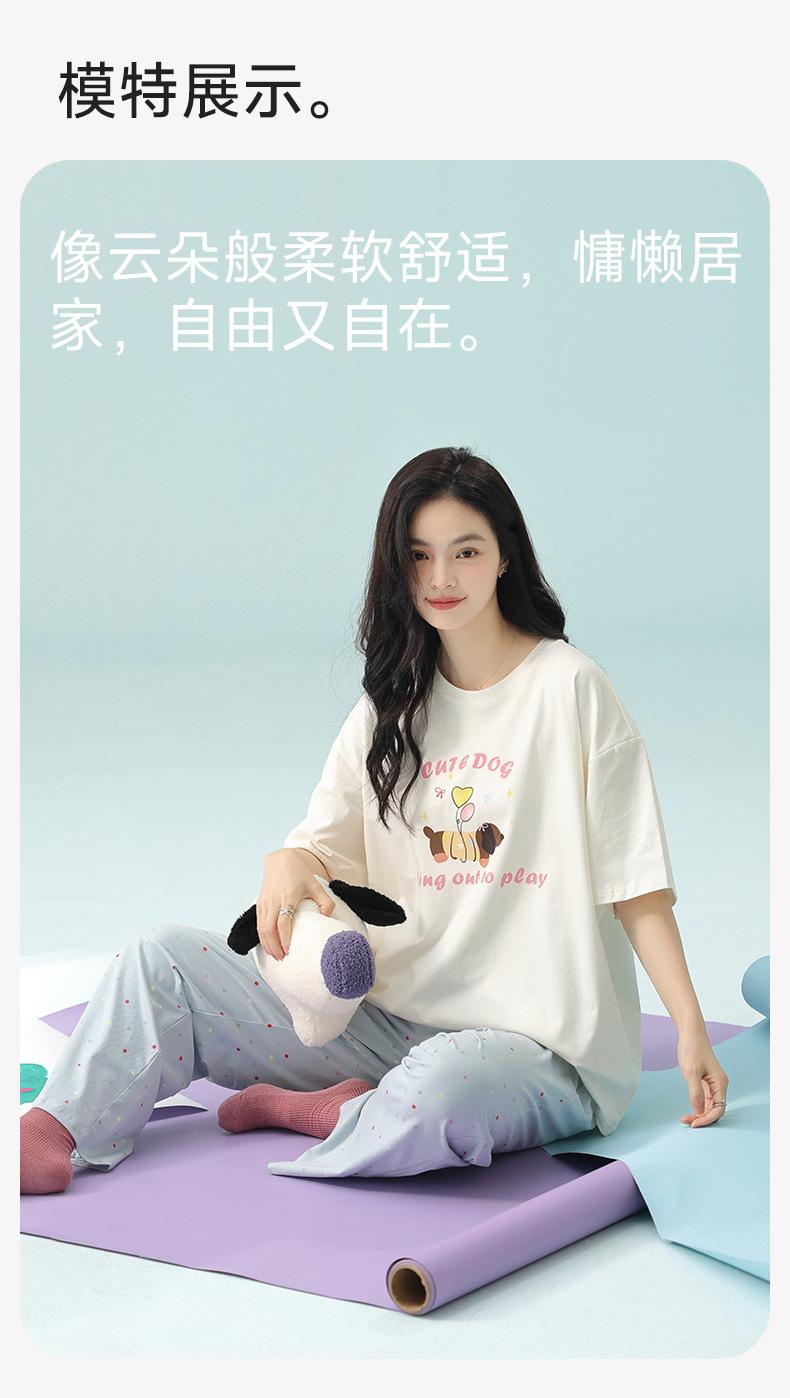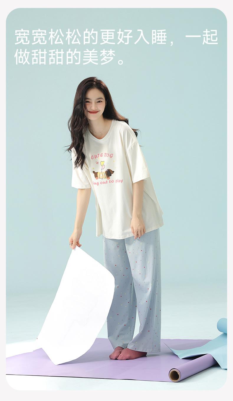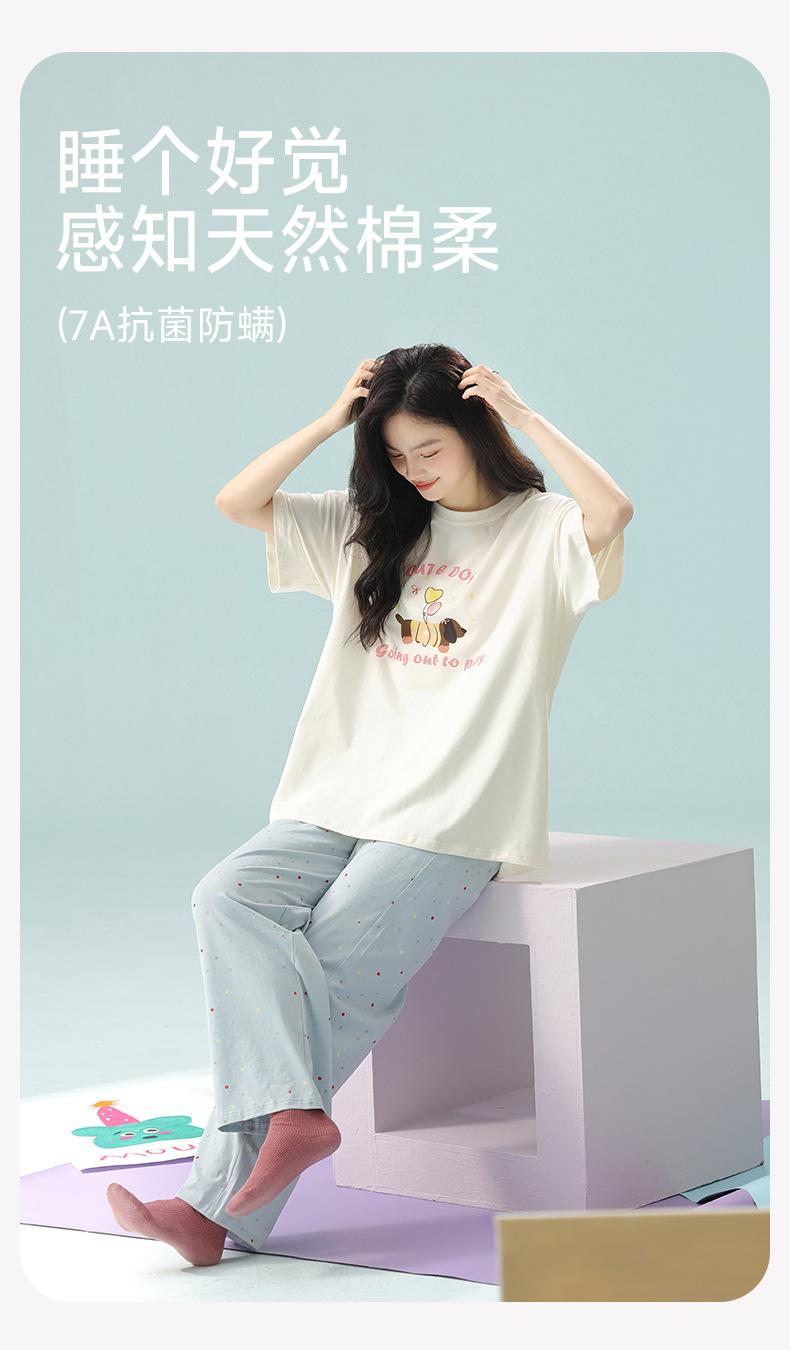 [7A antibacteriano] verano nuevo pijama de señora algodón manga corta pantalones moda lindo delgado traje de ropa de casa
