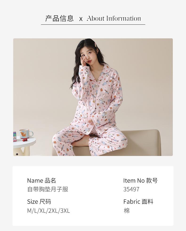 Pijamas de manga larga de algodón de imitación para embarazadas y lactantes, con almohadilla para el pecho, ropa de luna, venta al por mayor