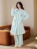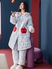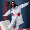 (robe + trousers) zxz30068 blue plaid apple robe pants - quilted