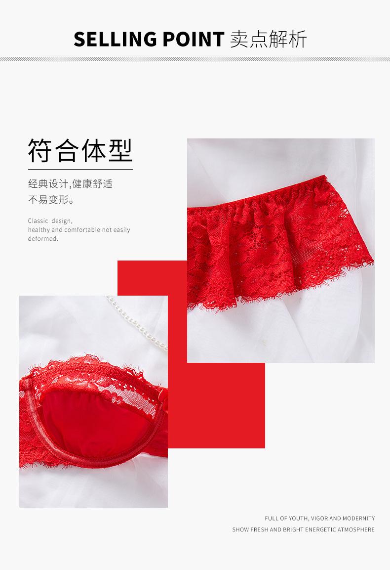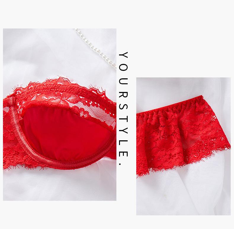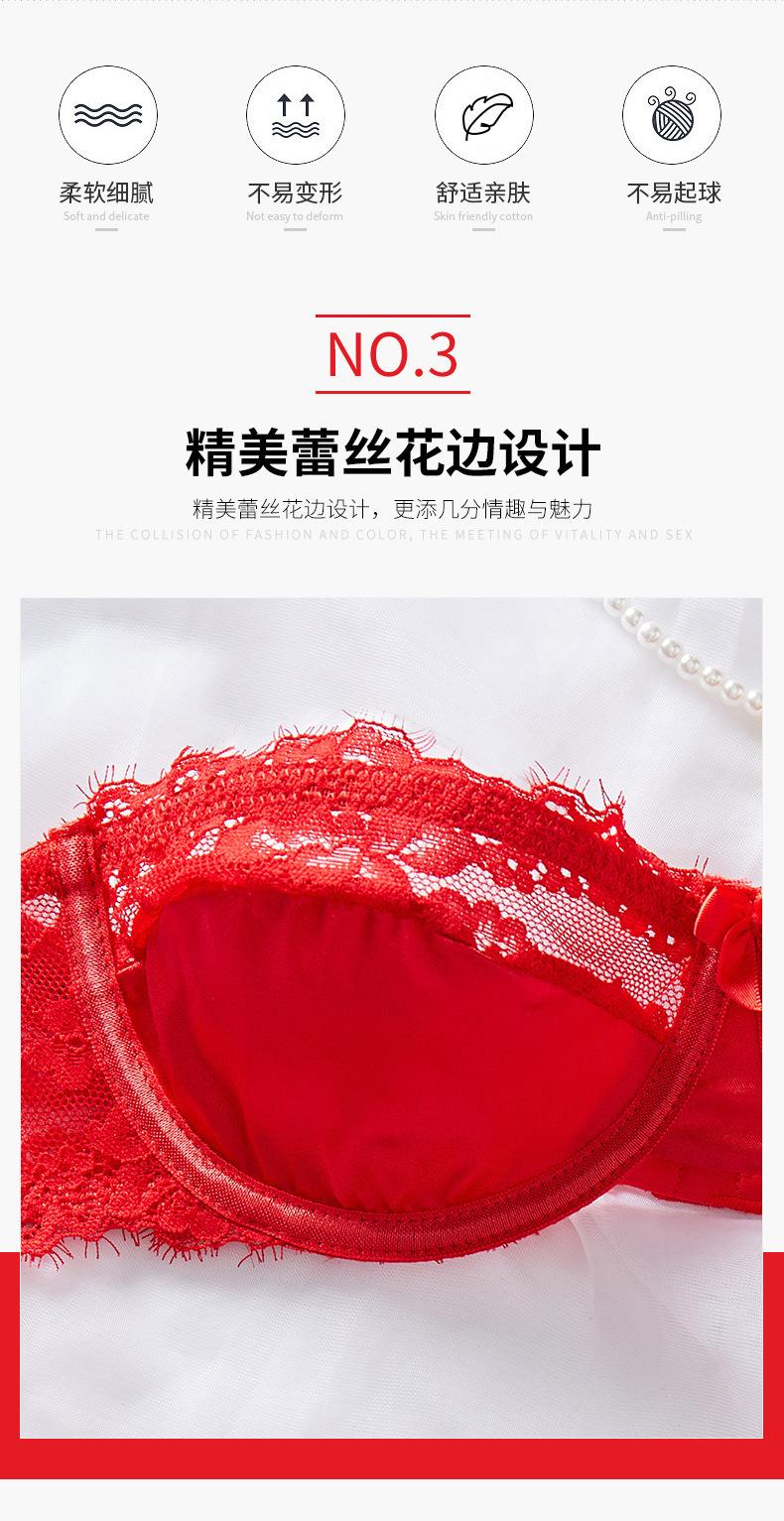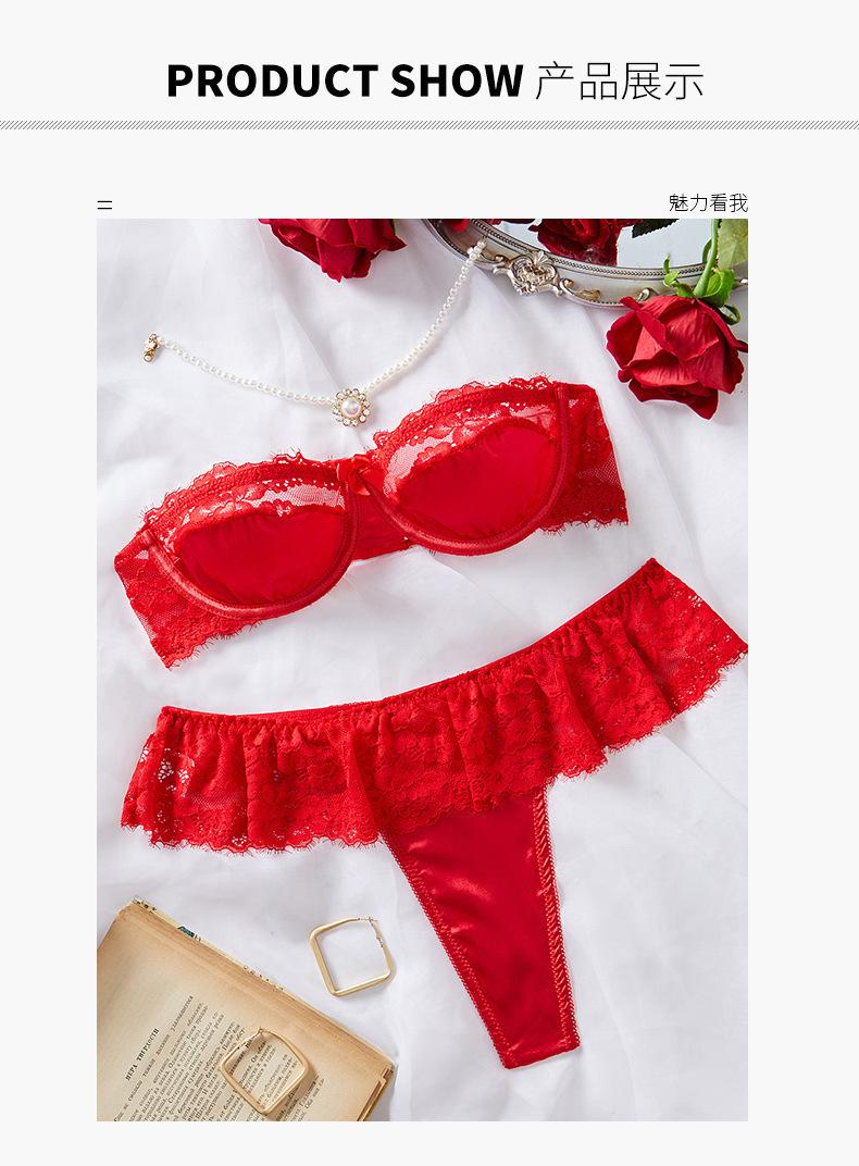 Ropa Interior Transfronteriza de Encaje Rojo, Transpirable, Cómoda y Sexy, Conjunto Tentación Push-Up