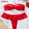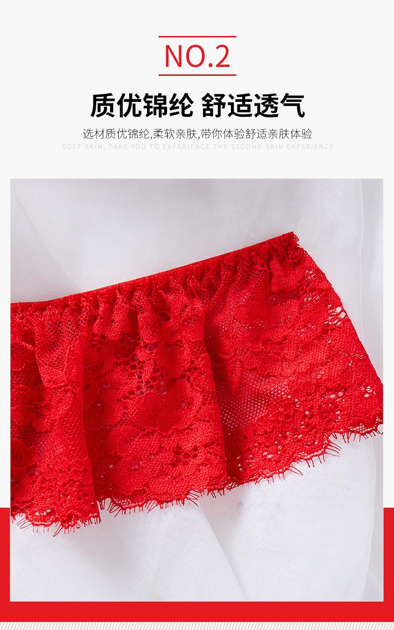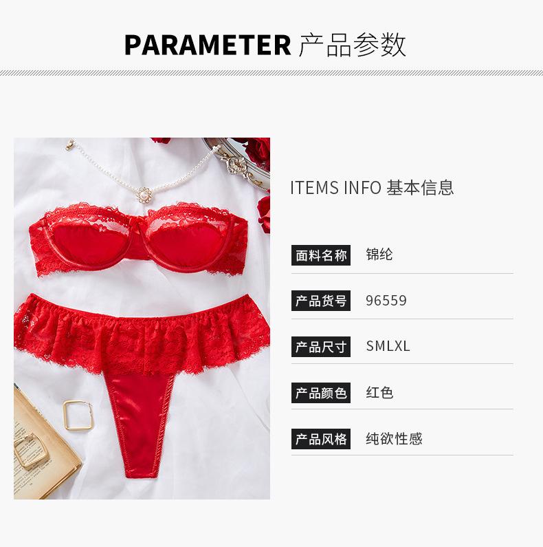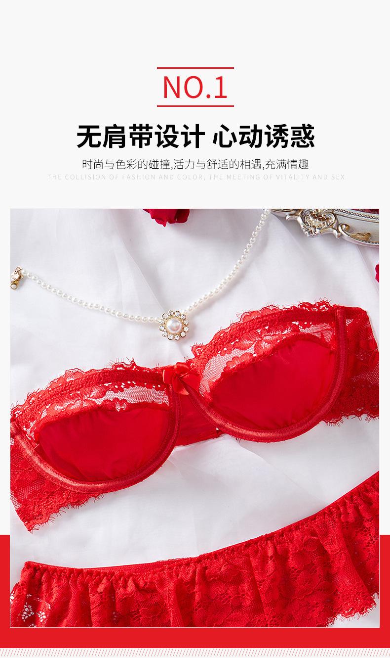 Ropa Interior Transfronteriza de Encaje Rojo, Transpirable, Cómoda y Sexy, Conjunto Tentación Push-Up
