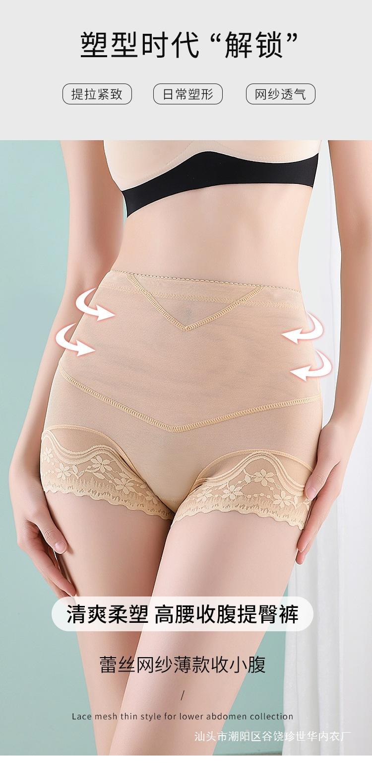 Bragas de verano transpirables de cintura alta con refuerzo de encaje para realzar la cadera y el abdomen para mujer, para después del parto, con barriga pequeña y sin marcas.