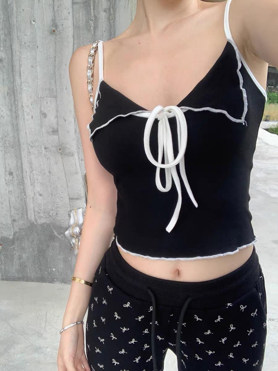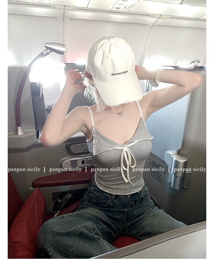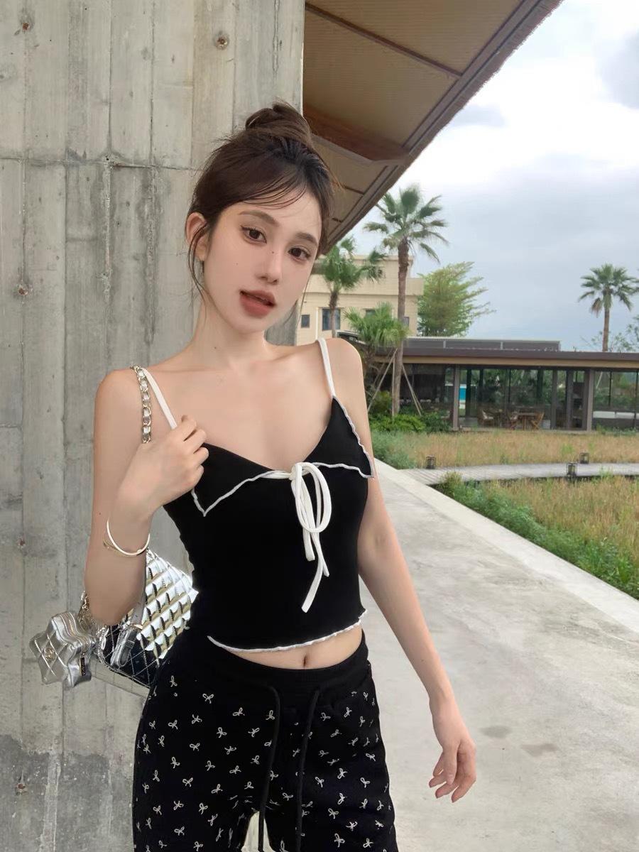 Camisola pequeña Spice Girl pura y sexy de primavera y verano para mujer, prenda exterior corta, sin mangas, diseño interior único y elegante.
