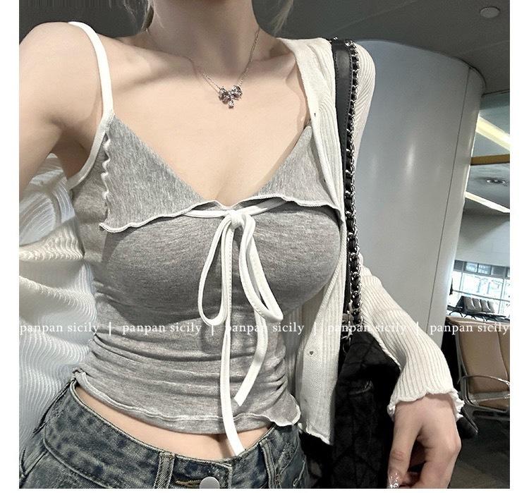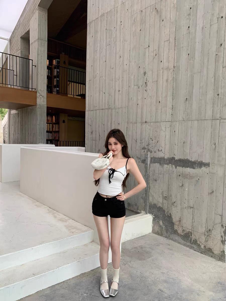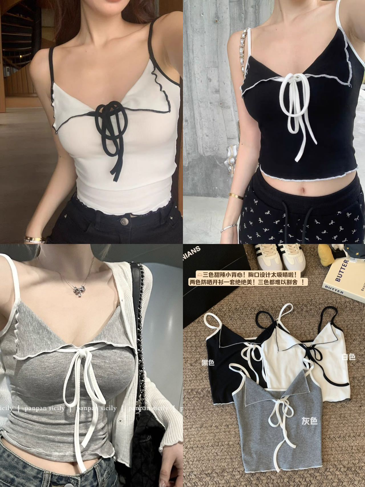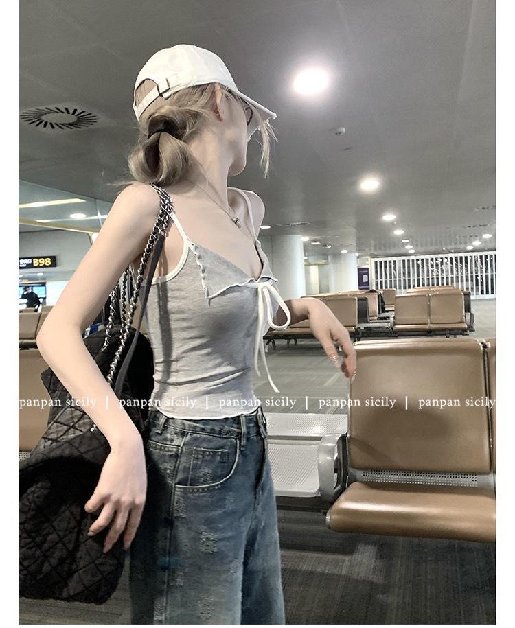 Camisola pequeña Spice Girl pura y sexy de primavera y verano para mujer, prenda exterior corta, sin mangas, diseño interior único y elegante.