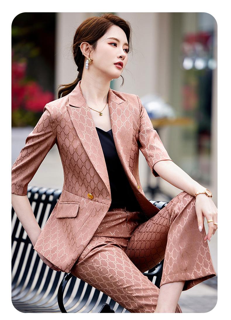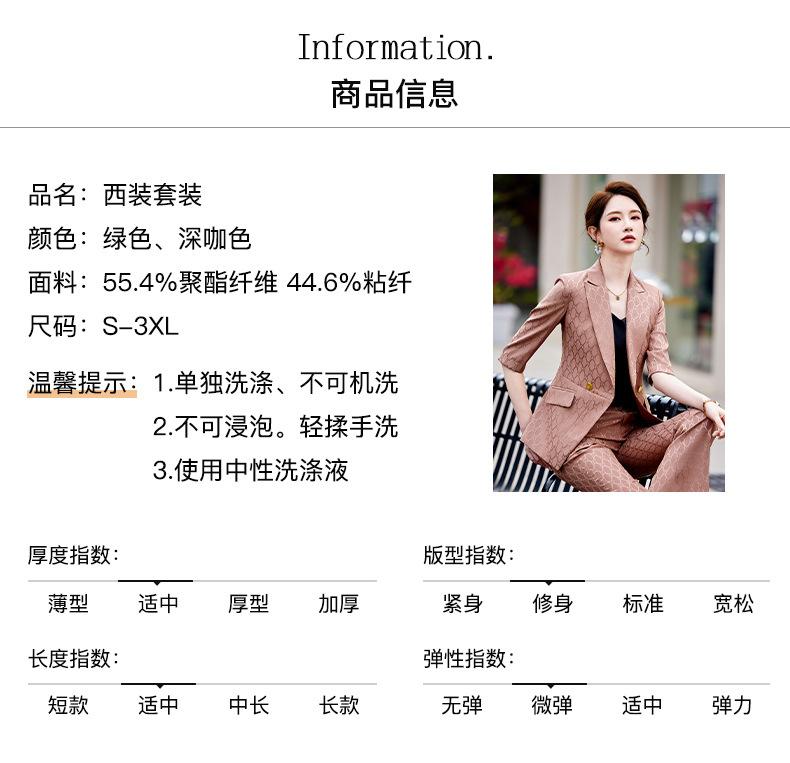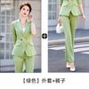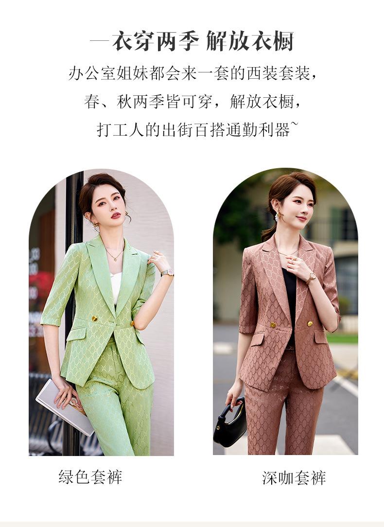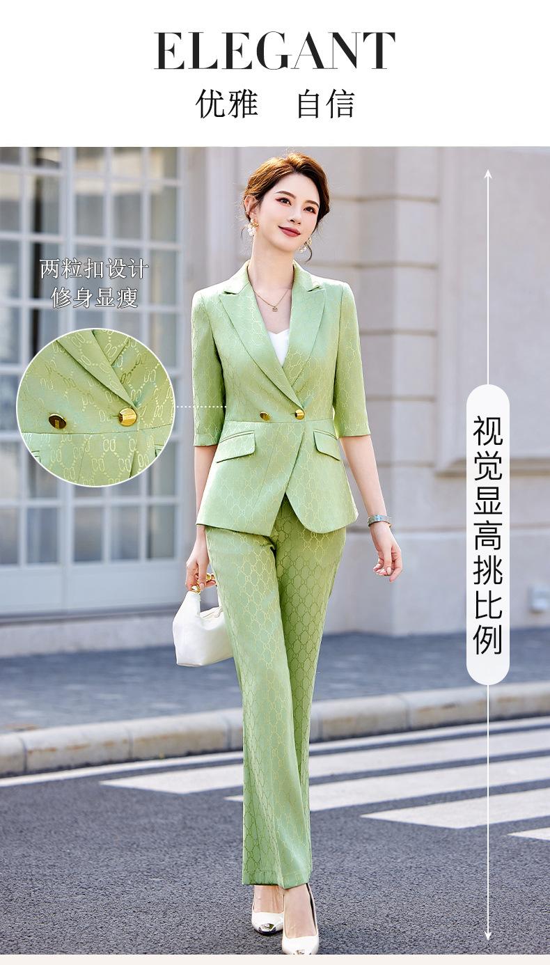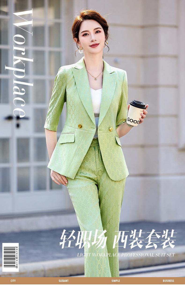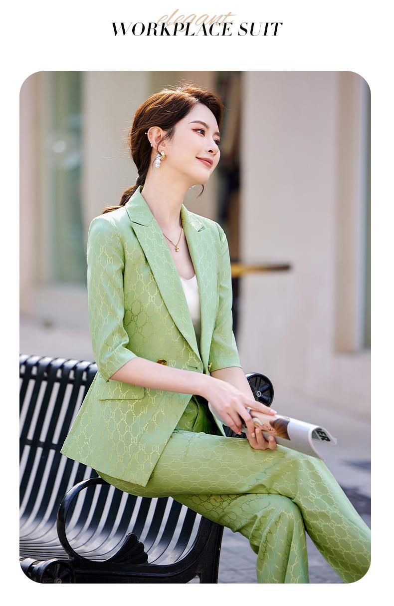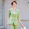 Traje informal profesional de media manga para mujer, traje pequeño con cuello, abrigo y pantalones, primavera/verano/otoño, color verde, 2024