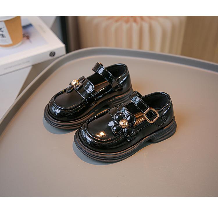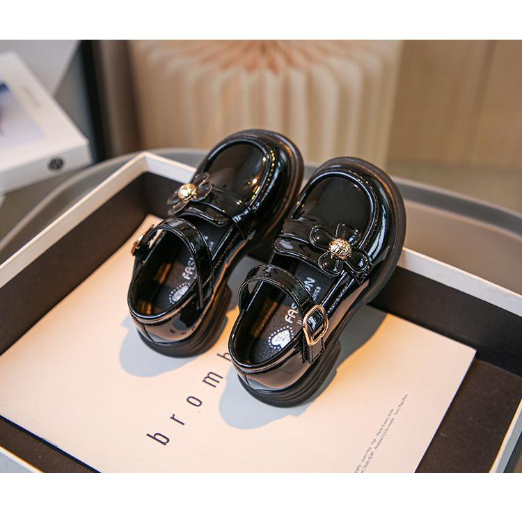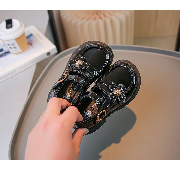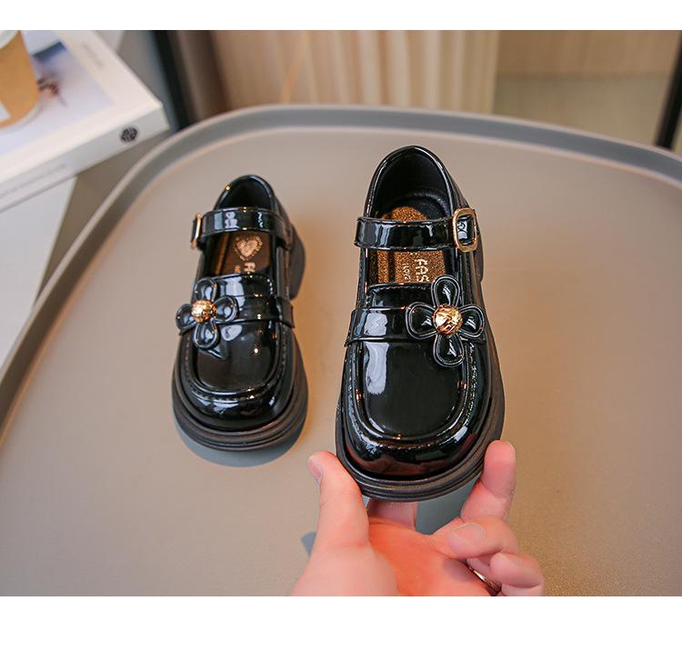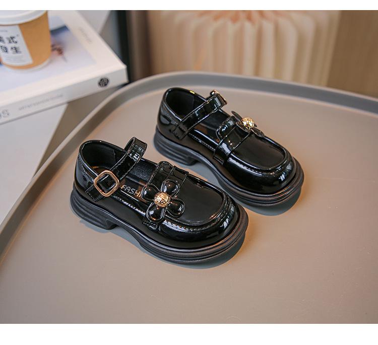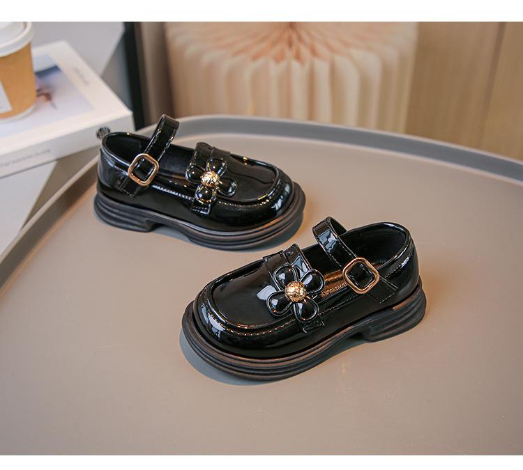 Zapatos de princesa para niñas, zapatos de cuero, primavera y otoño, zapatos individuales para niños, suela suave, estilo inglés, zapatos negros para niños, mocasines para niñas estudiantes.