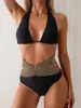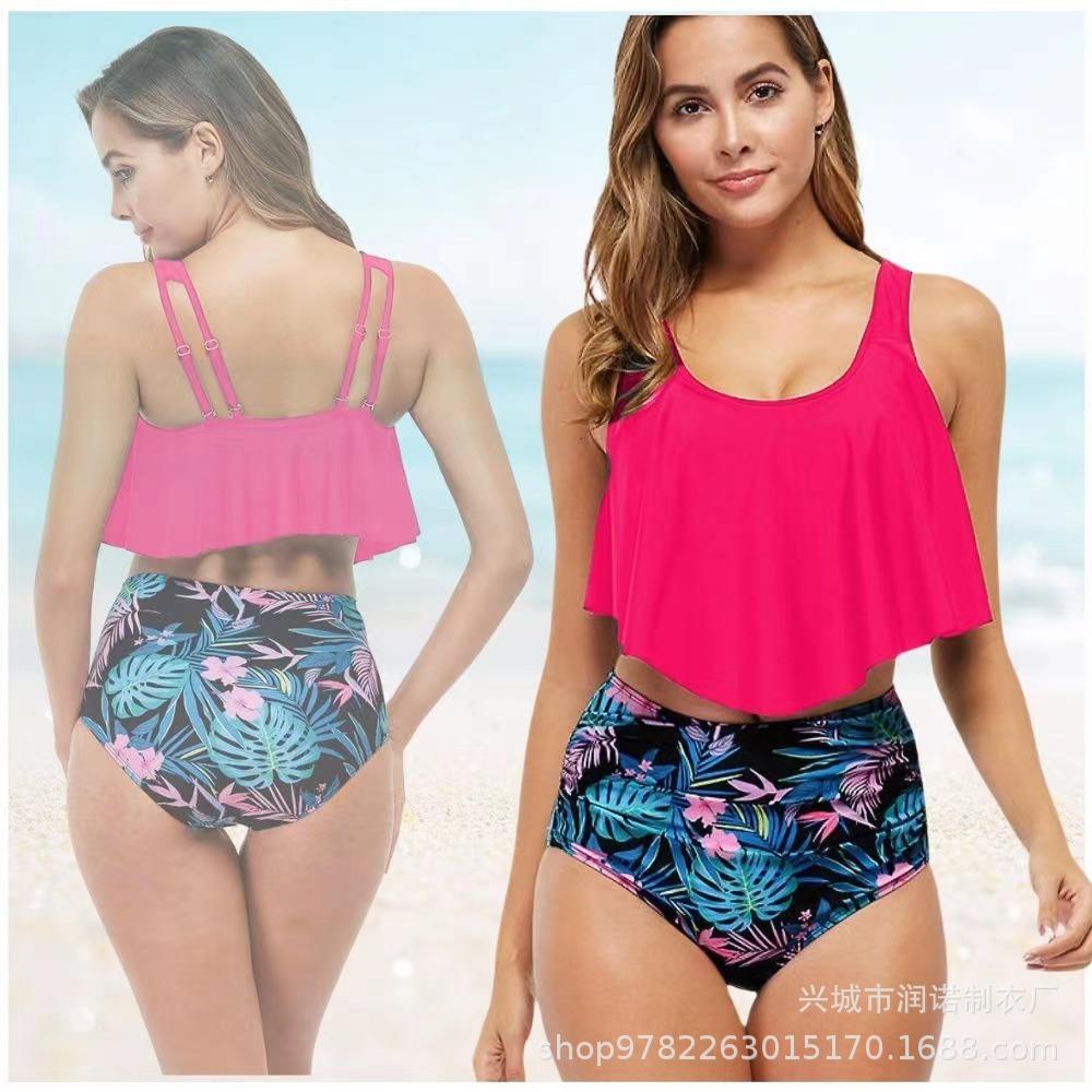 2024 nuevo traje de baño europeo y americano para mujer, bikini cruzado, bikini dividido, cintura alta conservadora, traje de baño atractivo de Amazon