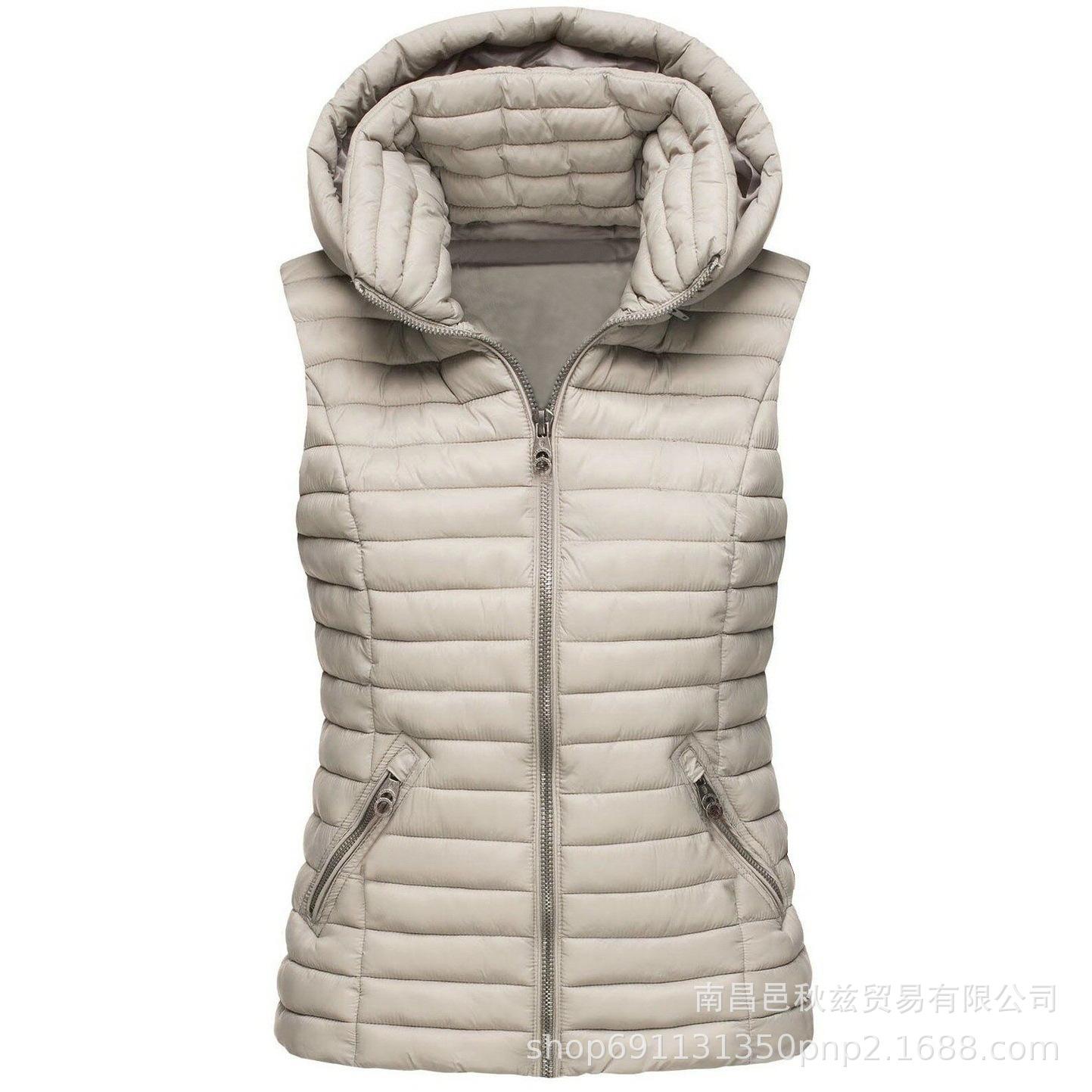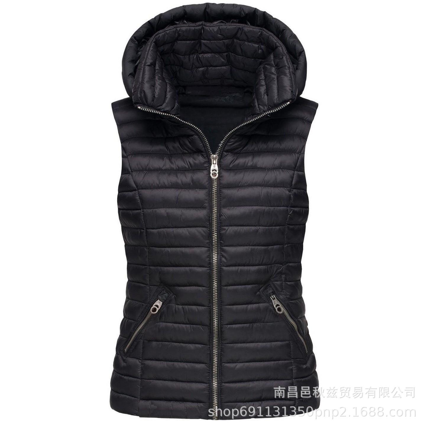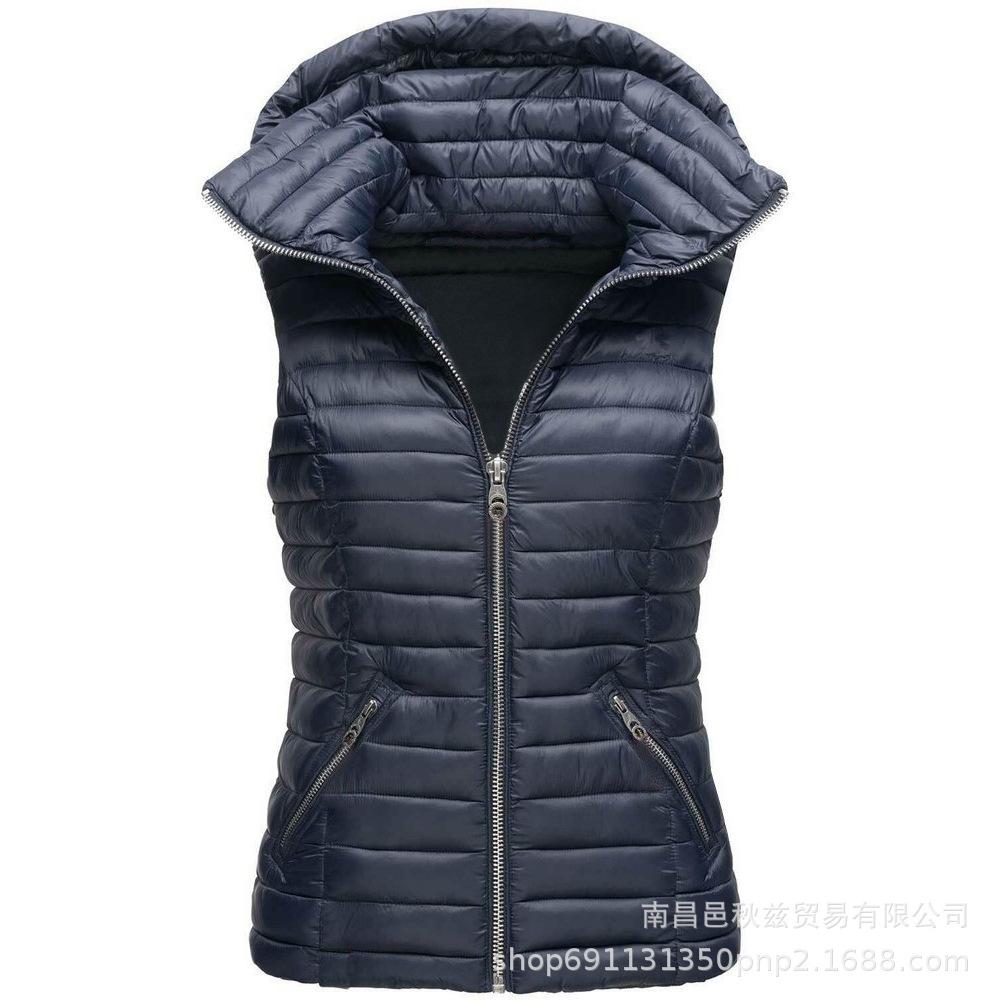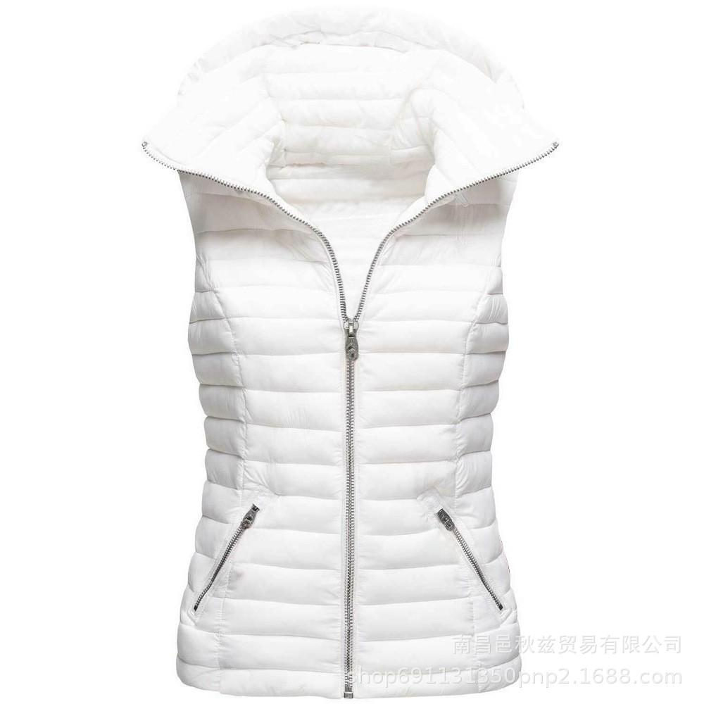 Chaleco de cuello alto para mujer, de invierno, transfronterizo, europeo y americano, con capucha, ajustado, de algodón de color puro, sin mangas, cálido, para exportación