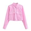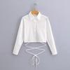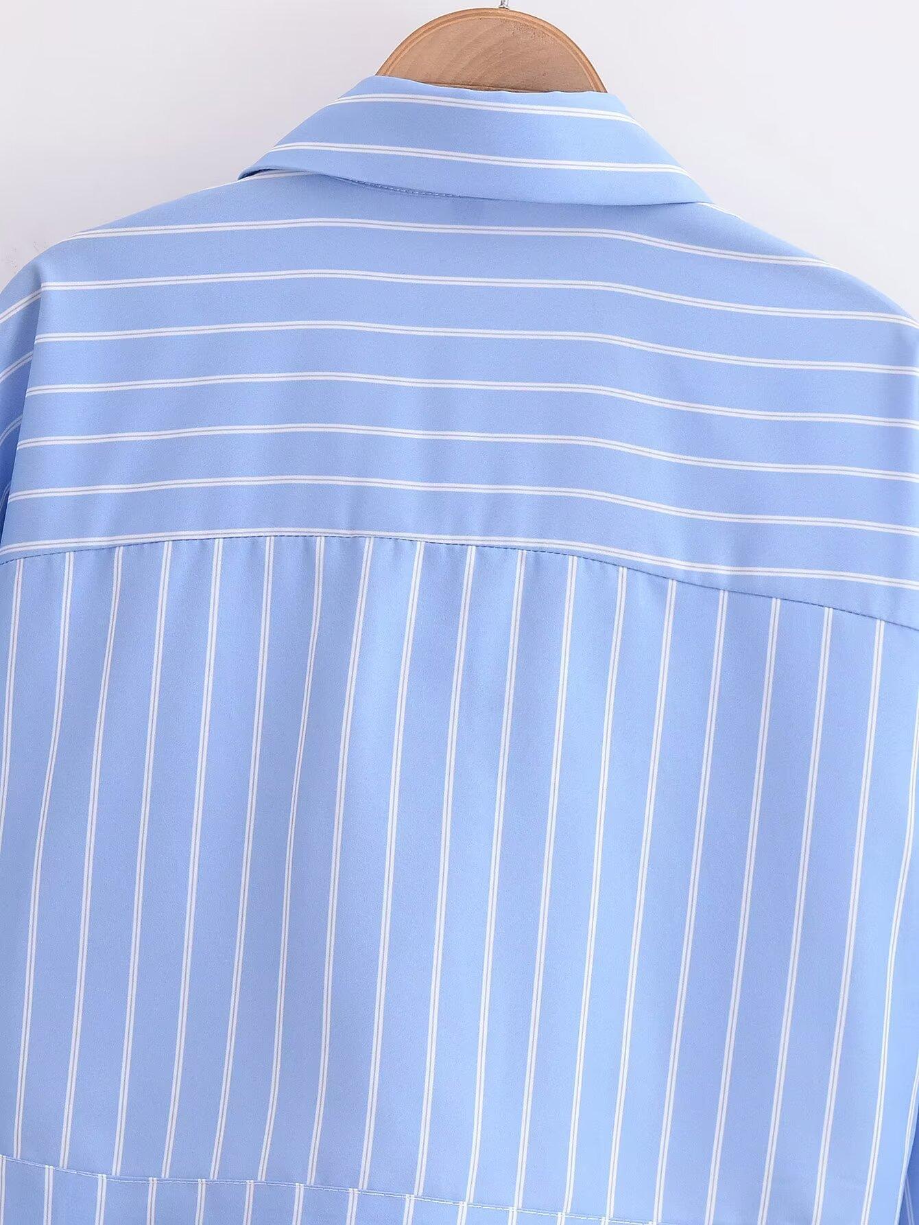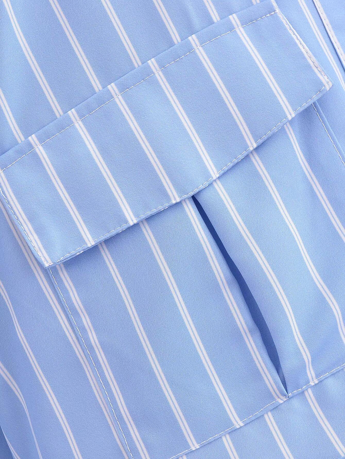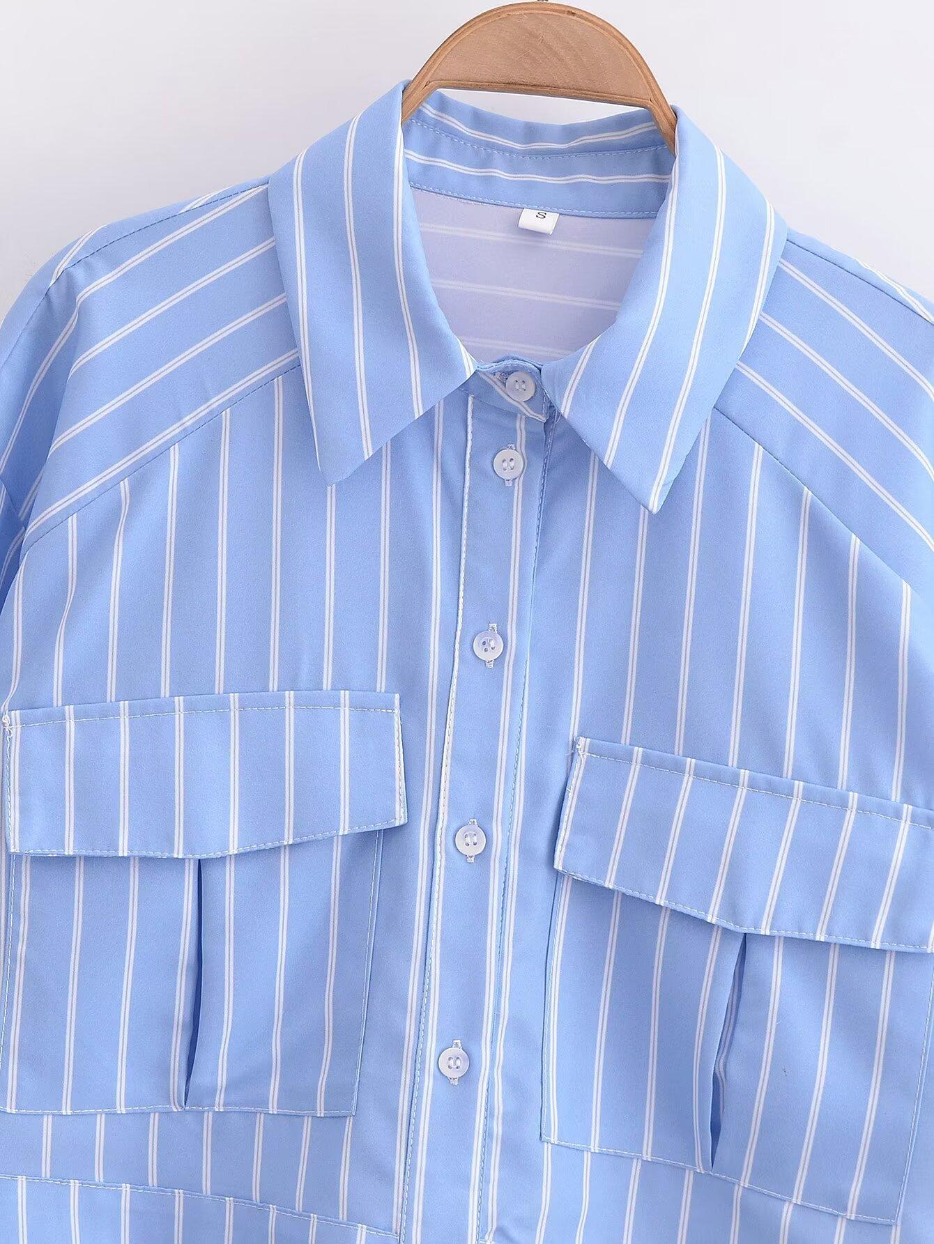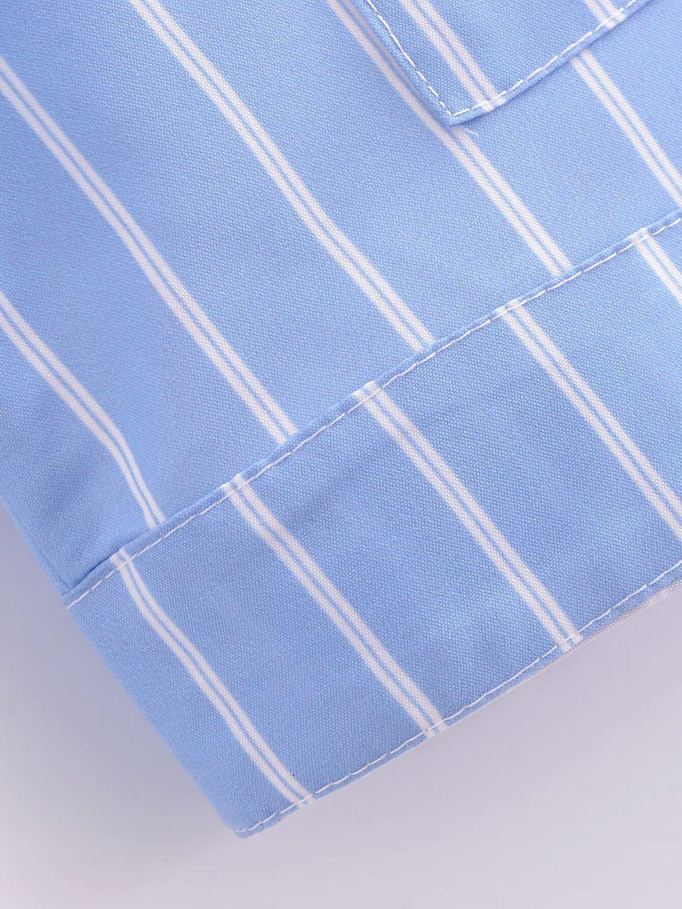 Camisa de manga larga de popelina corta a rayas con solapa personalizada para mujer, estilo transfronterizo europeo y americano, primavera y verano 2024