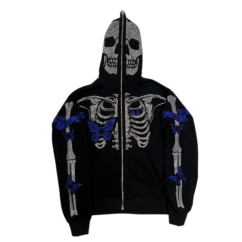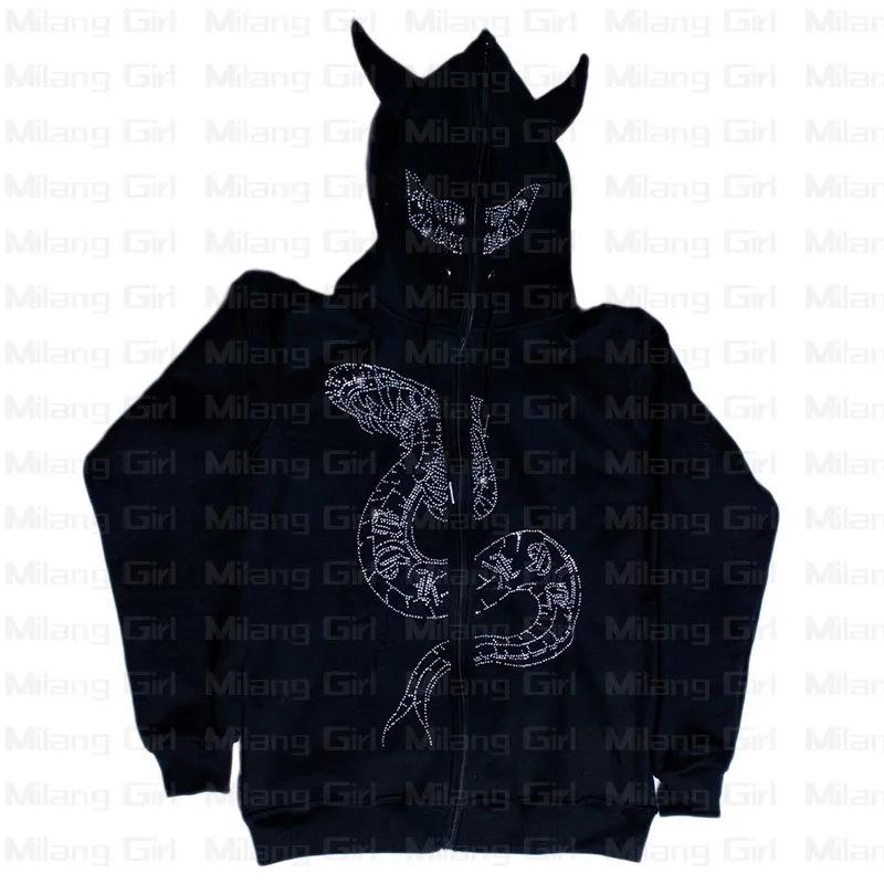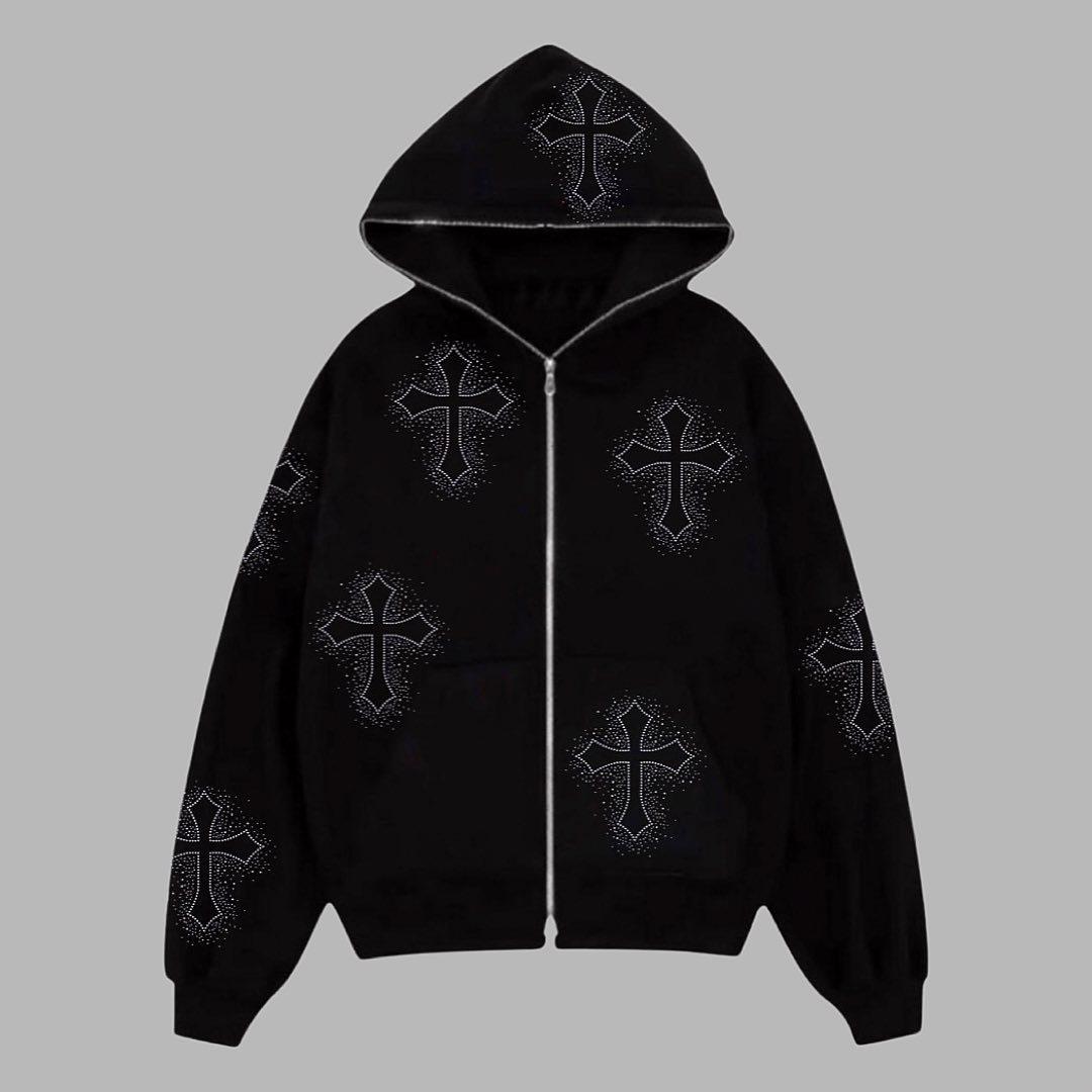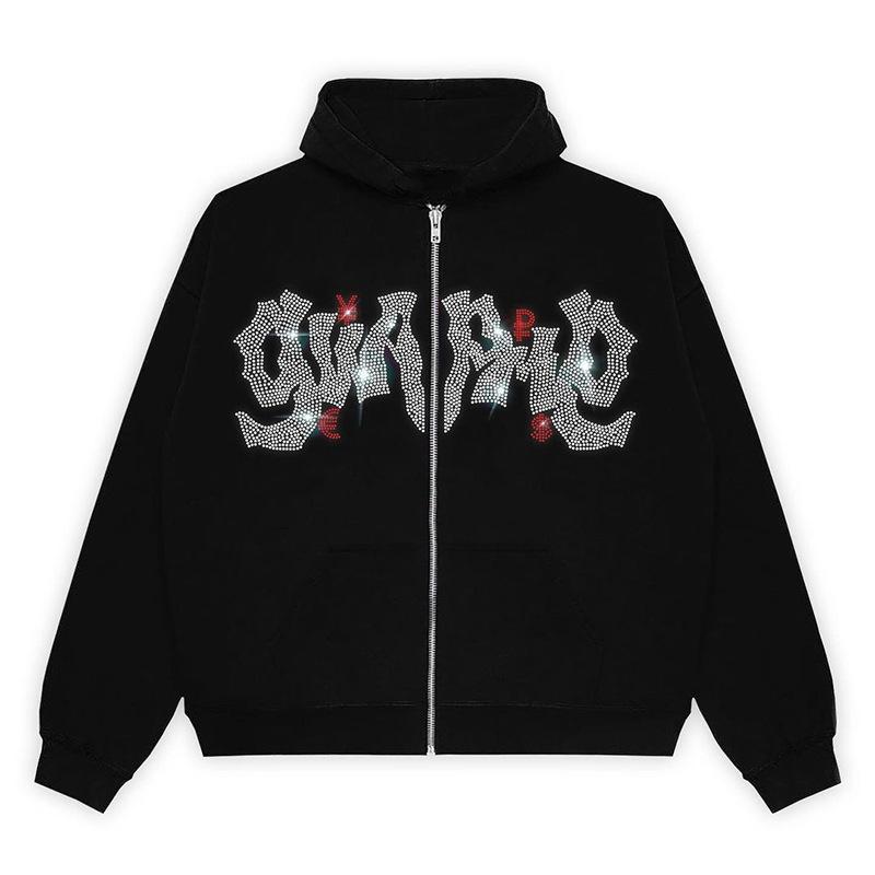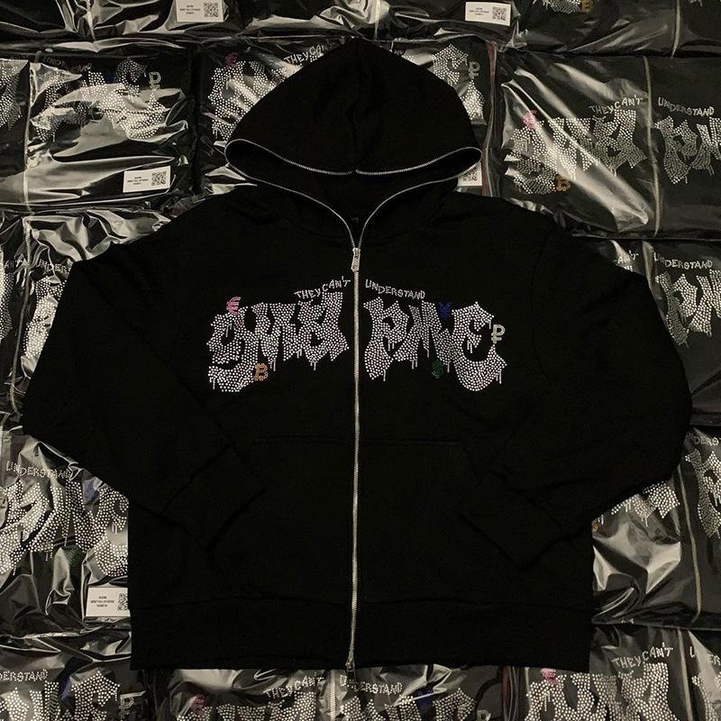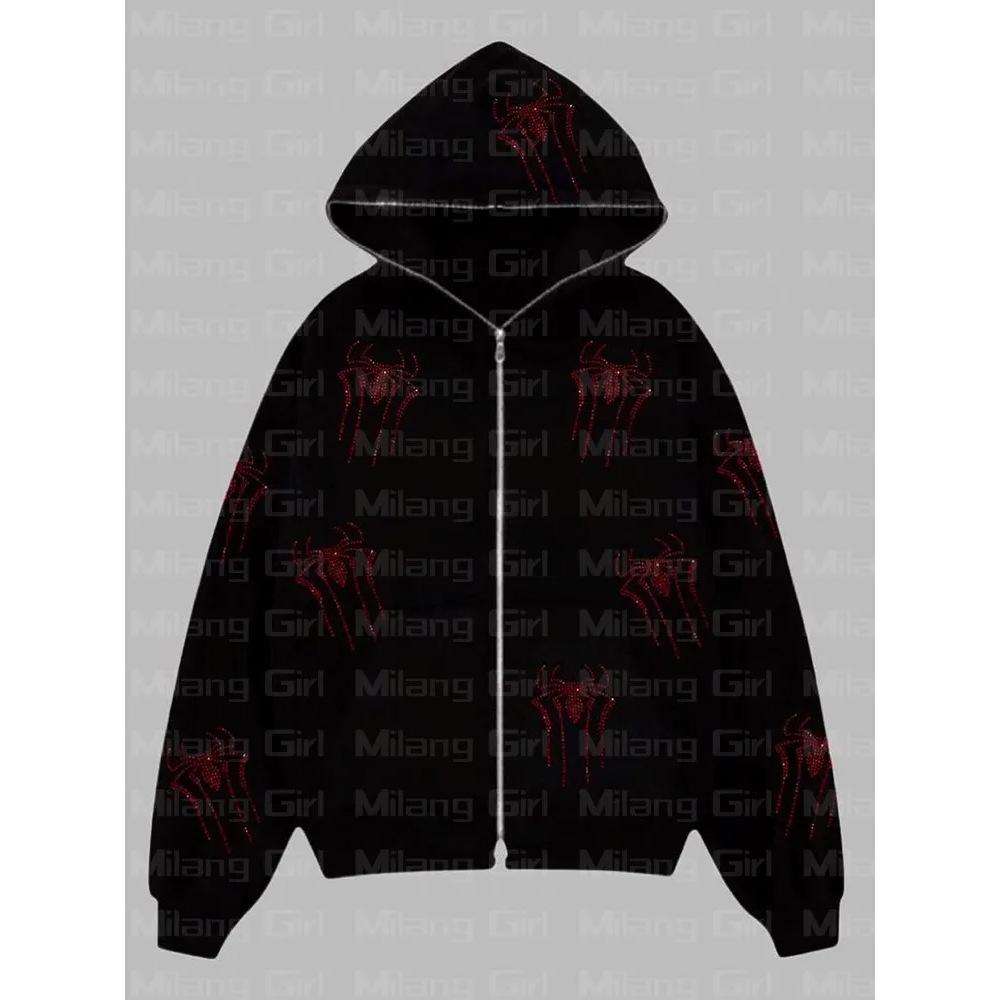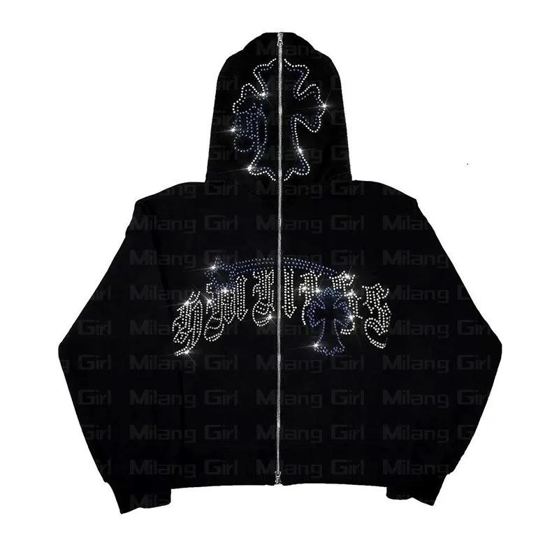 Top Estampado con Pedrería de Patrón Marca de Moda Mismo Estilo Chaqueta Cárdigan Sudadera Holgada con Cierre Europeo y Americano Suéter para Hombre y Mujer