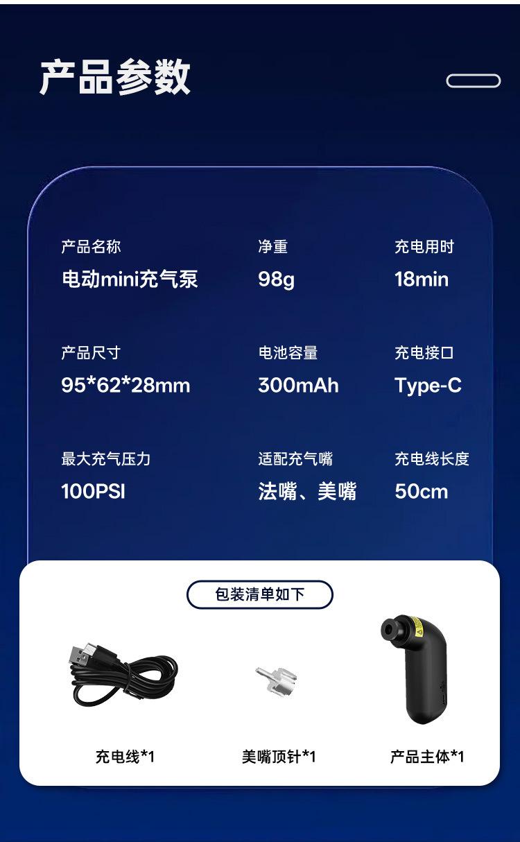 Nueva minibomba eléctrica portátil de alta presión para bicicleta de montaña o carretera, accesorios para bomba de aire