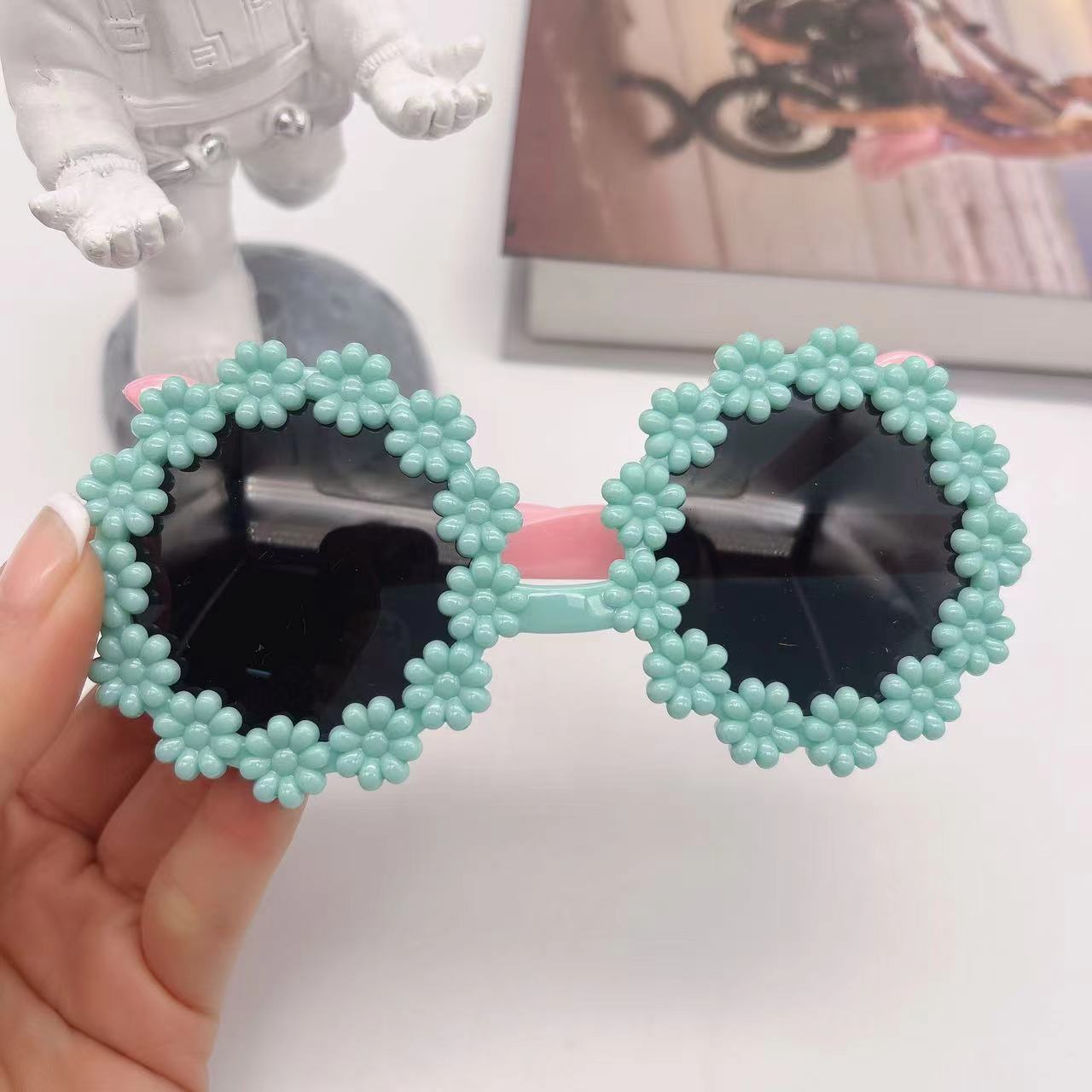 Gafas de sol para niños, gafas de sol para bebé, bicolor, pequeñas flores, lindas gafas de protección solar para niños y niñas, anti-ultravioleta, ojos de amor