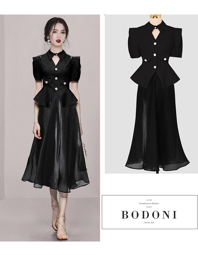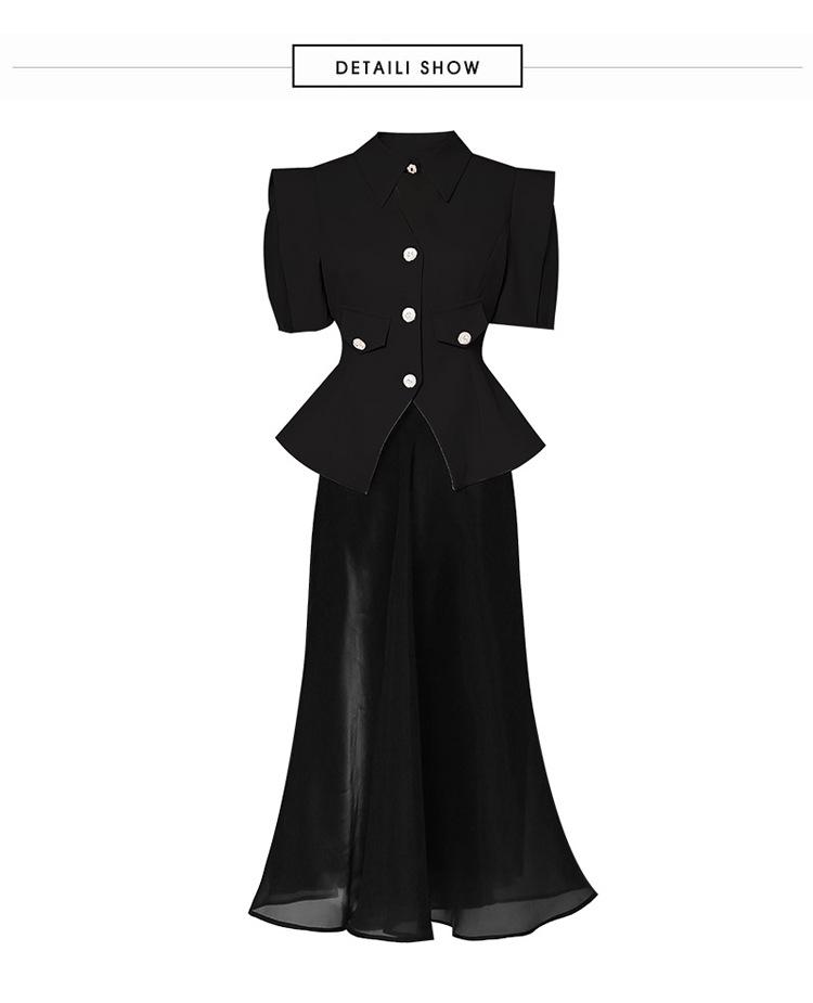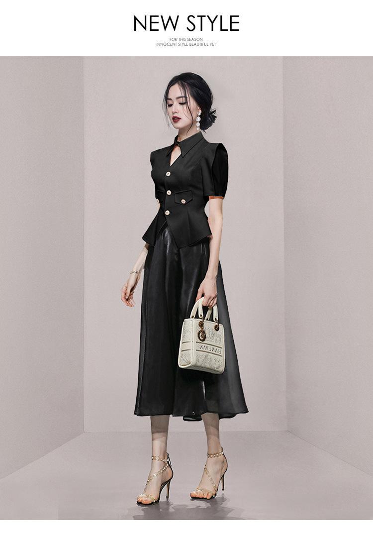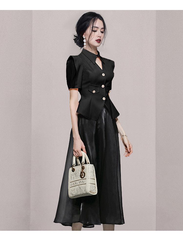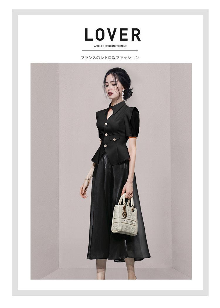 2023 Verano nueva moda manga corta hombro ángulo recto top traje vintage