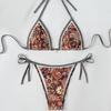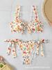 2025 Nuevo Traje de Baño Floral Estampado Europeo y Americano Sexy Bikini Cuello V Profundo Push-up Espalda Descubierta con Tirantes Traje de Baño para Mujer