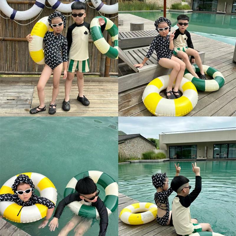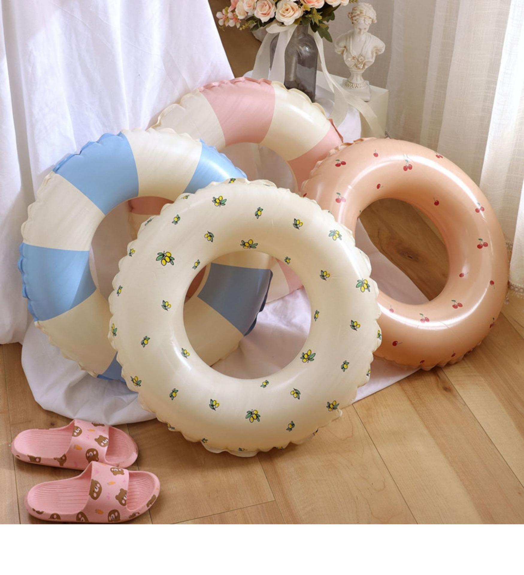 Anillo de natación inflable para bebés, diseño de cereza, estilo danés vintage a rayas, grueso, para adultos y niños.