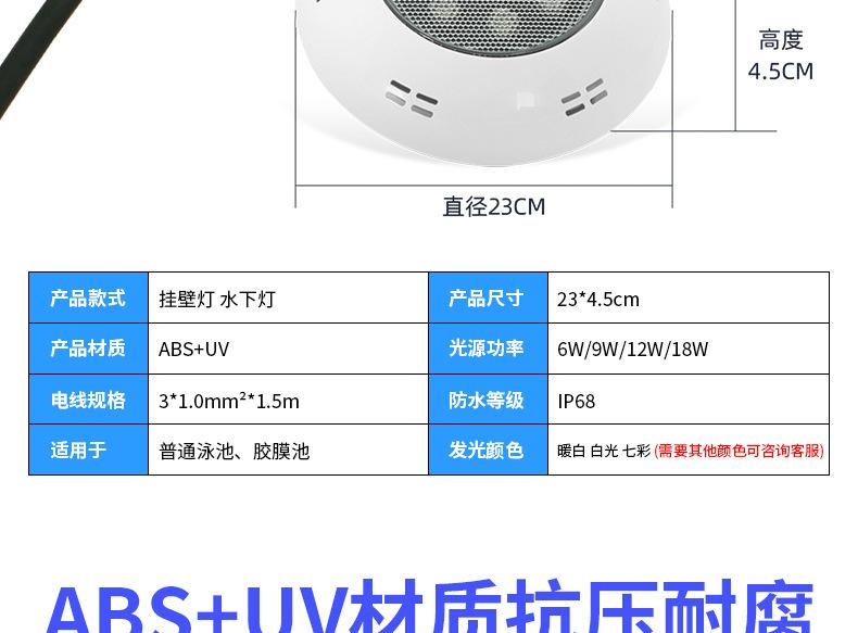 Lámpara LED subacuática para piscina, lámpara de pared para piscina, material ABS + UV, lámpara de fondo para piscina, lámpara de paisaje acuático colorida, lámpara subterránea