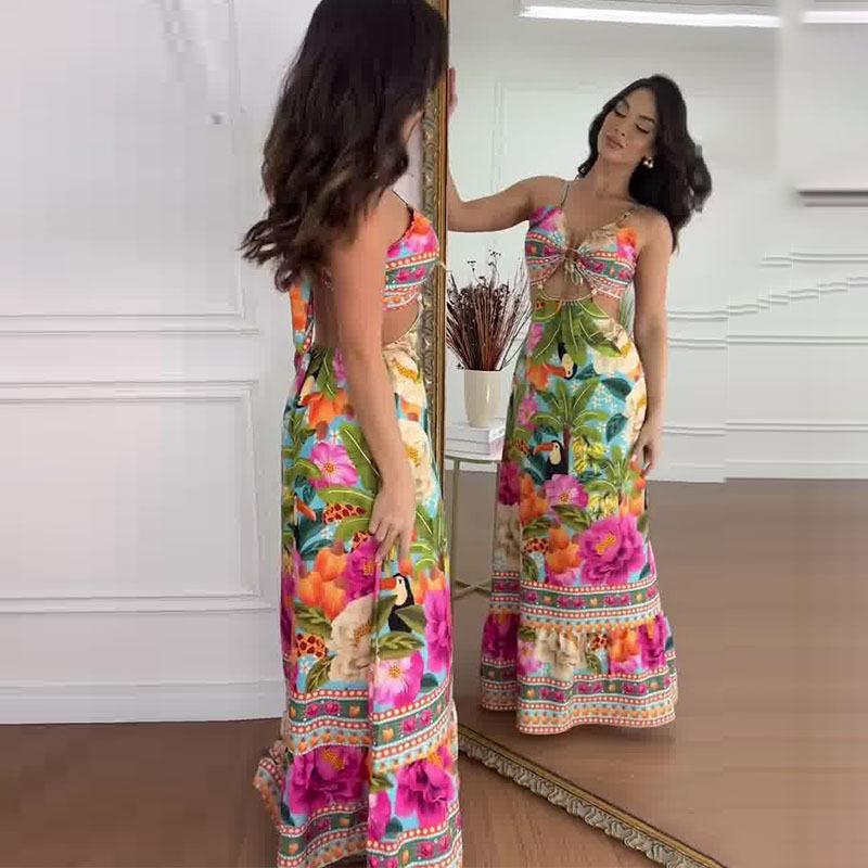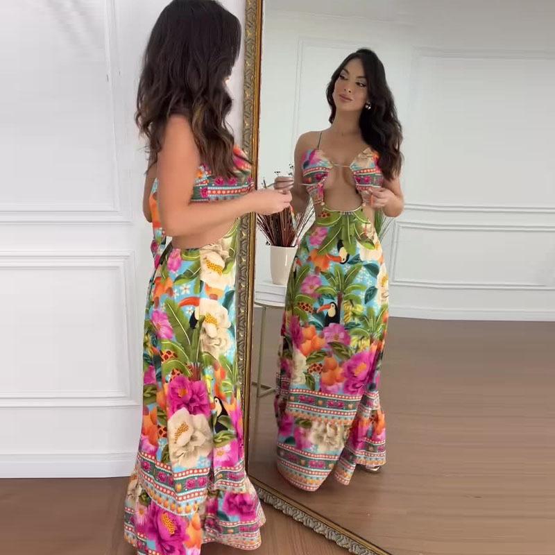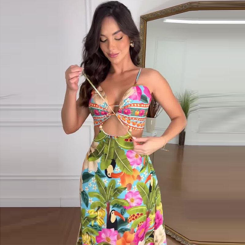 Vestido sexy con estampado calado, estilo europeo y americano, para mujer, verano 2024, Amazon, ropa transfronteriza.