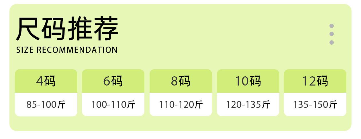 4( 42.5-50kg ), 6( 50-55kg ), 8( 55-60kg ), 10( 60-67.5kg ), 12( 67.5-75kg )