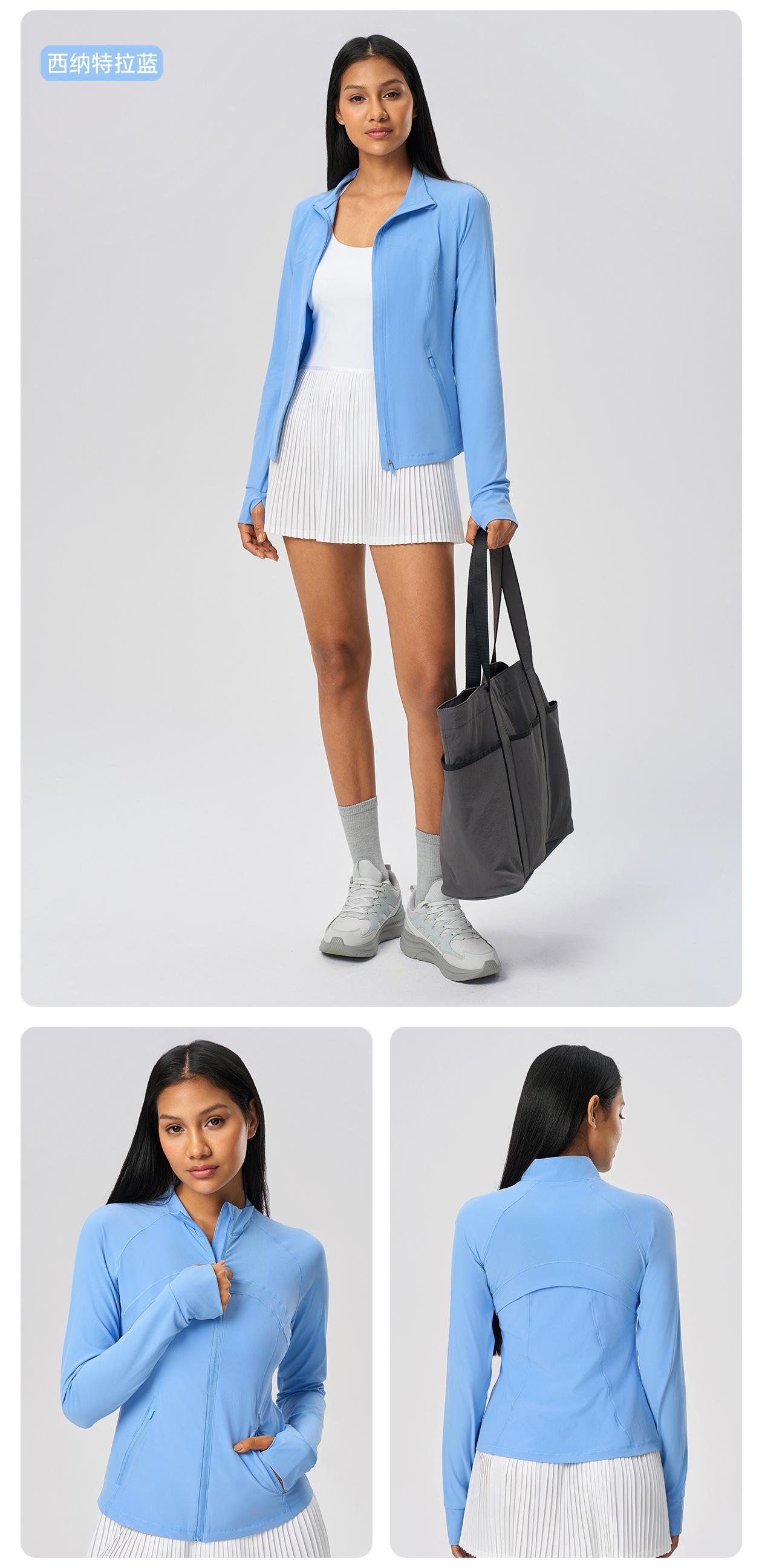 Cárdigan para mujer de verano con cuello mao, corte ajustado, protector solar, ligero, de secado rápido, transpirable, UPF50 resistente a los rayos UV D25013