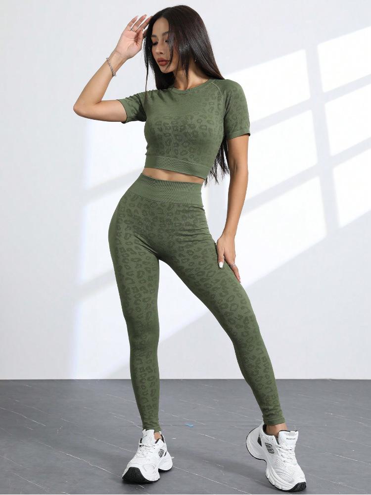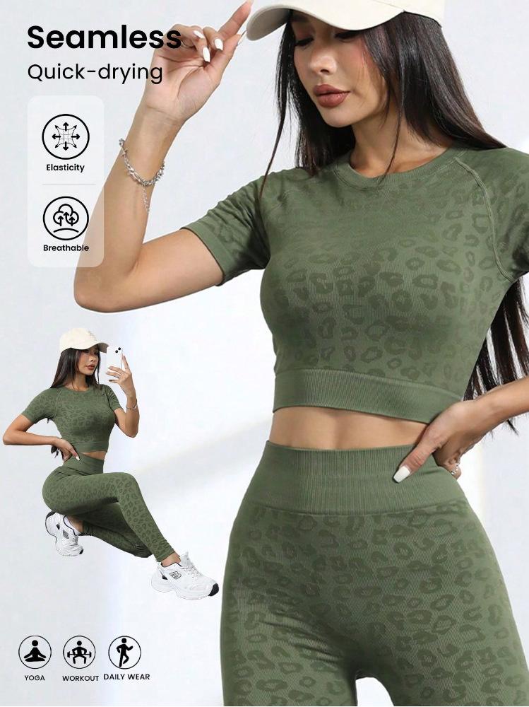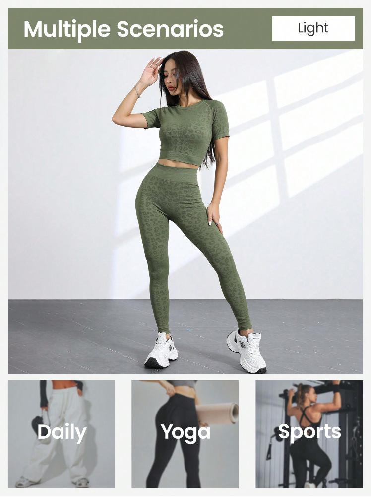 En Stock Estilo Europeo Transfronterizo Alta Resistencia Secado Rápido Transpirable Nailon Melocotón Trasero Adelgazantes Pantalones Estampado Leopardo Adelgazantes Set de Yoga