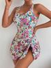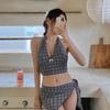 Nuevo bikini vintage de tres piezas con tirantes y estampado de flores a cuadros para mujer, traje de baño sexy con protección solar.
