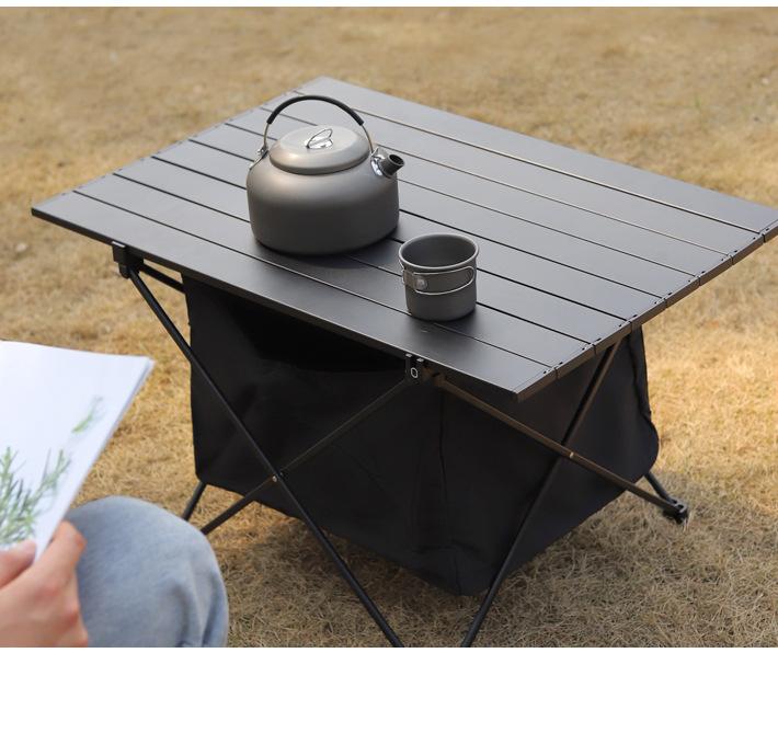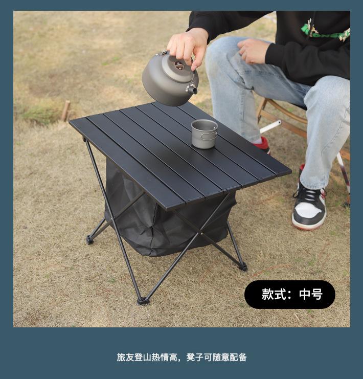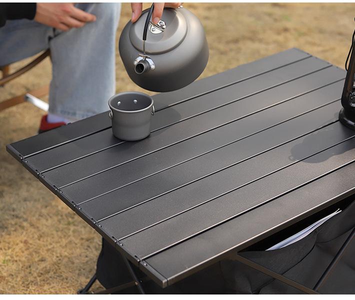 Mesa plegable de aleación de aluminio, totalmente negra, para acampar al aire libre, barbacoa, puesto