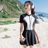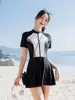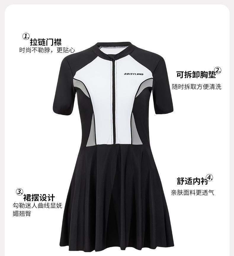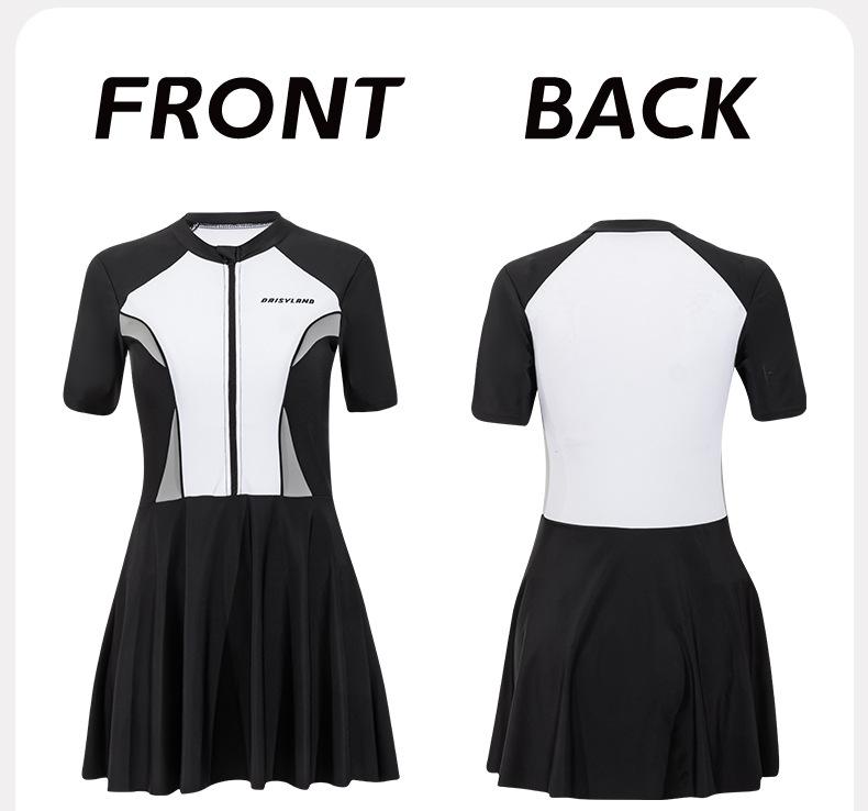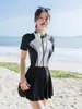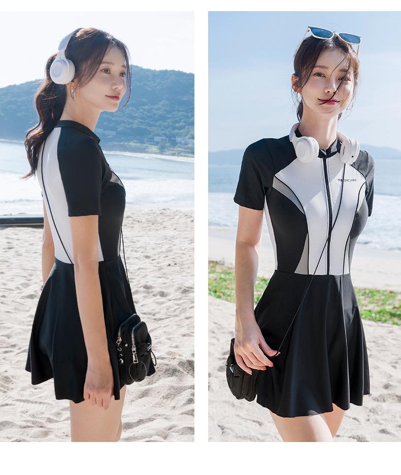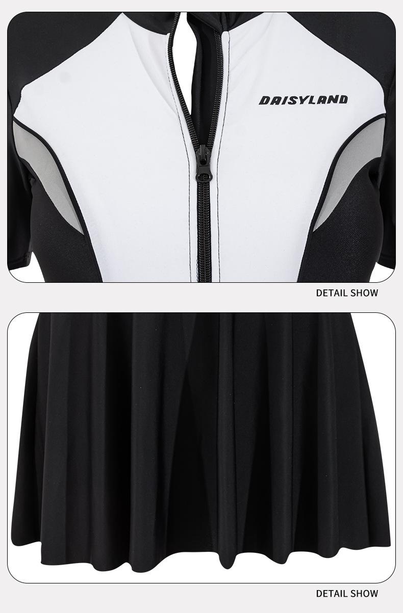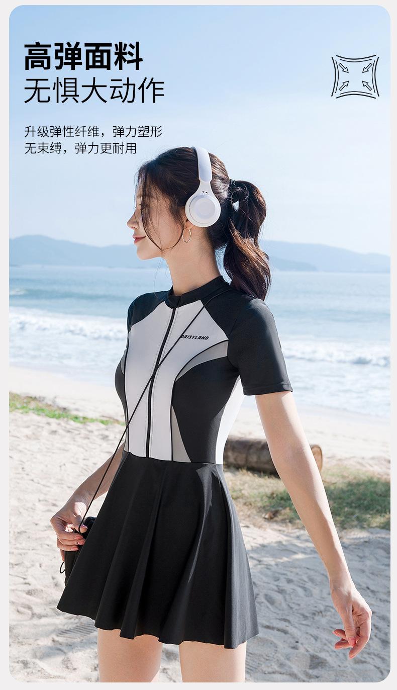 Traje de Baño Conservador de Manga Corta con Cremallera para Vacaciones Casuales 2025 para Mujer, Traje de Baño de Nailon de Secado Rápido