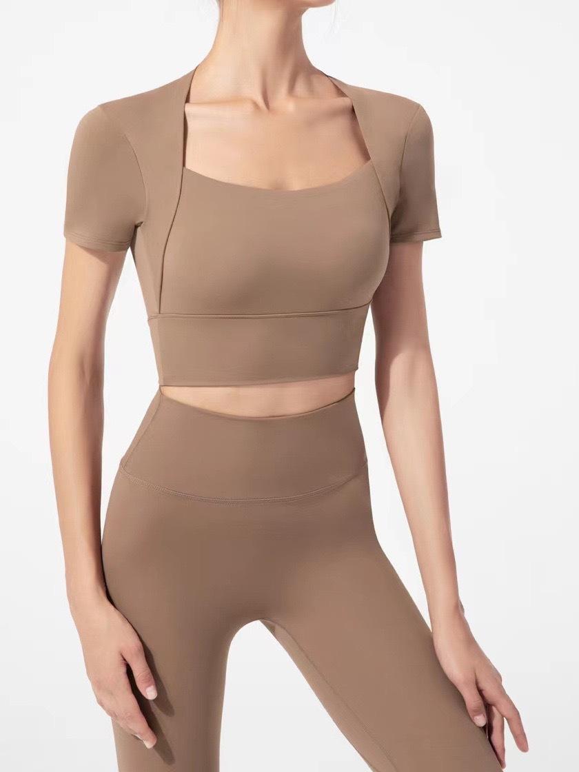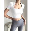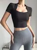 Traje de Yoga Falso de Dos Piezas con Almohadilla para el Pecho para Mujer, Sexy, para Correr, Fitness, Top Ajustado, Adelgazante, Deportivo, Camiseta de Yoga de Manga Corta
