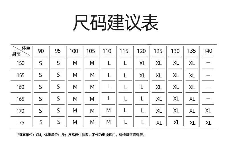 S (40.00 kg-47.50 kg, M (47.50 kg-55.00 kg, L (55.00 kg-65.00 kg, XL (65.00 kg-72.50 kg