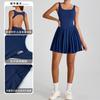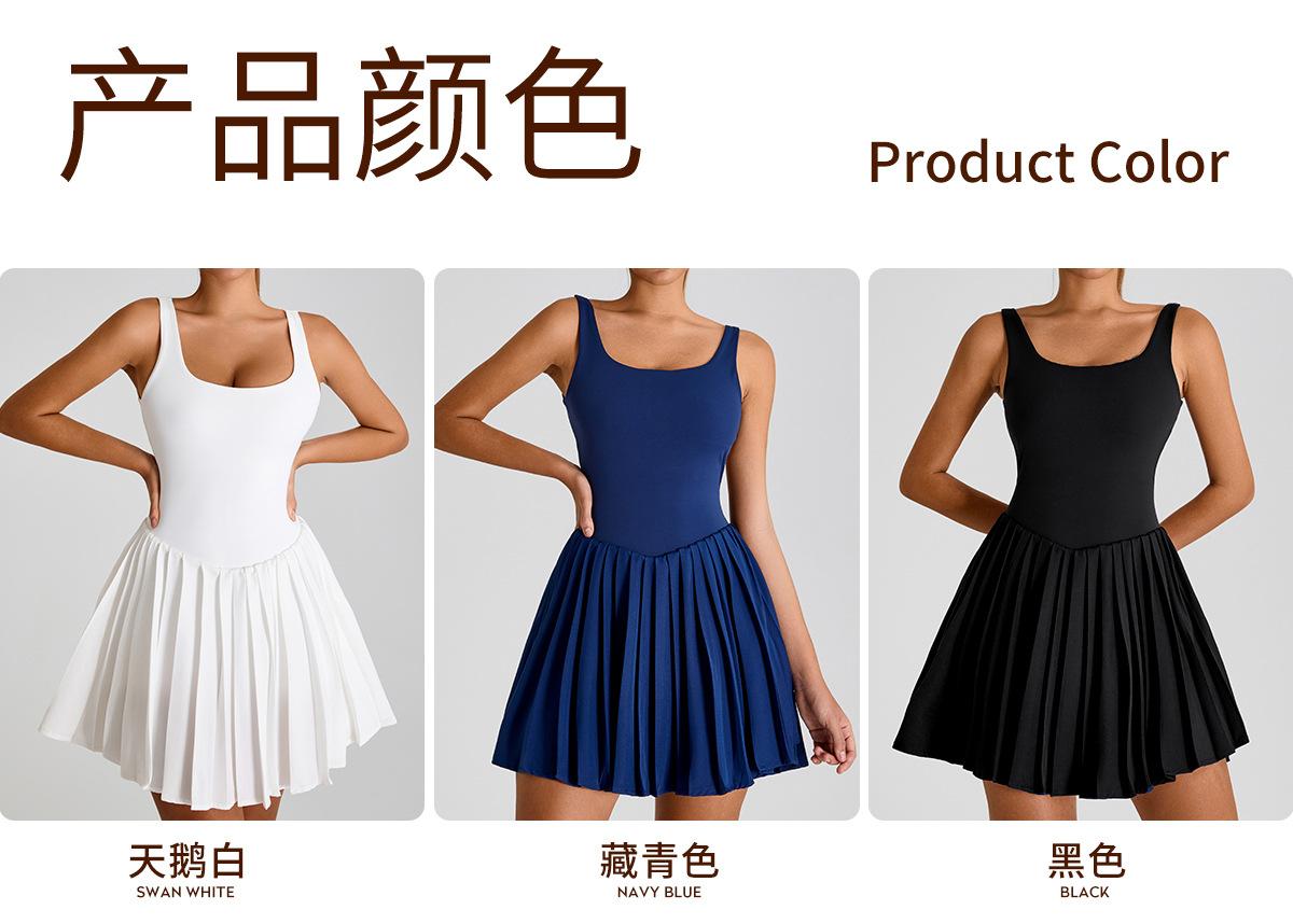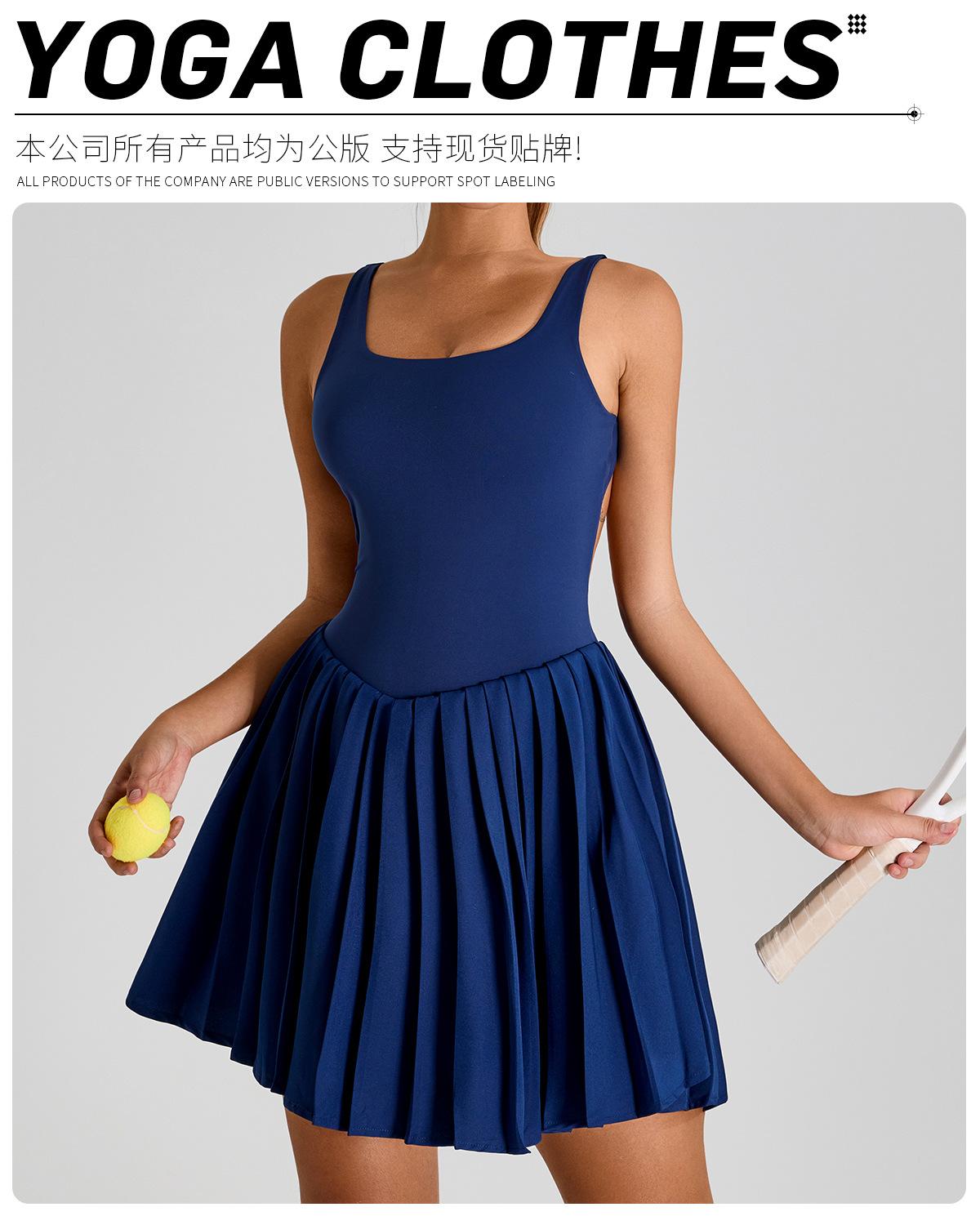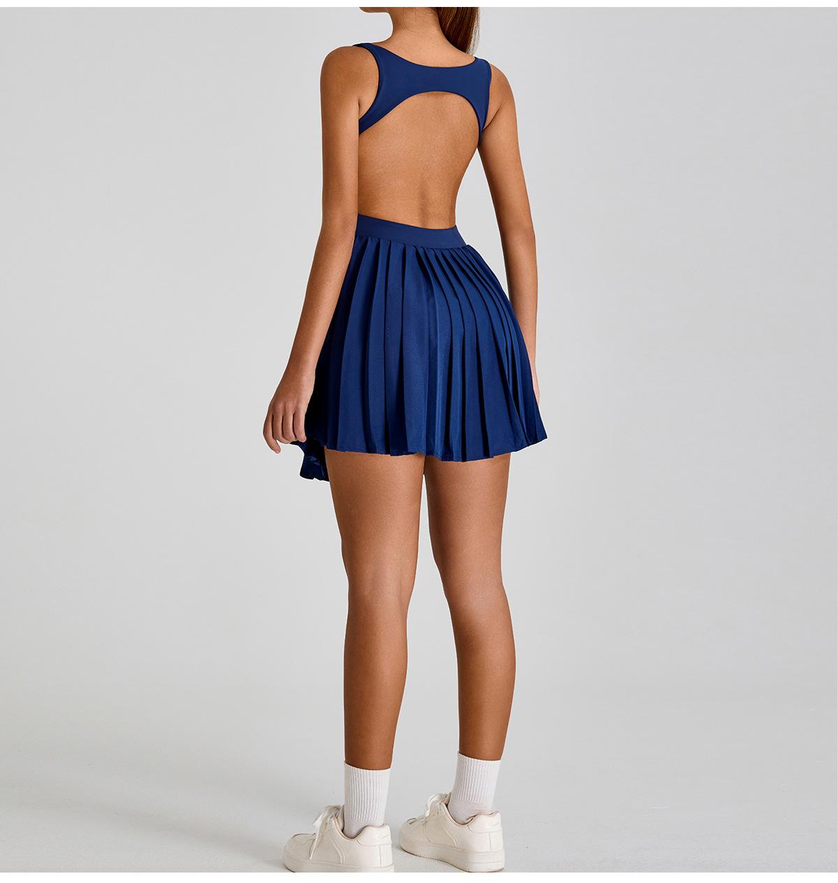 Nuevo Estilo Europeo y Americano Vestido Deportivo Grande sin Espalda con Espalda Hermosa para Mujer Falda de Yoga Plisada Anti-Exposición Falda de Tenis para Fitness al Aire Libre