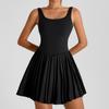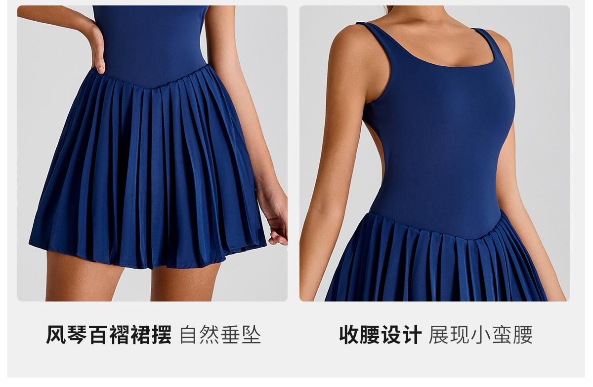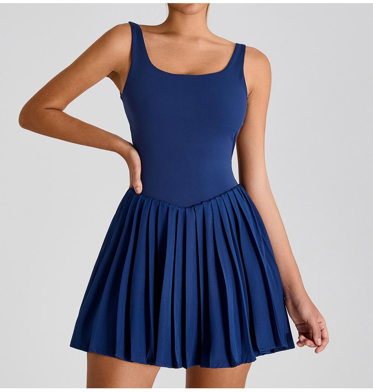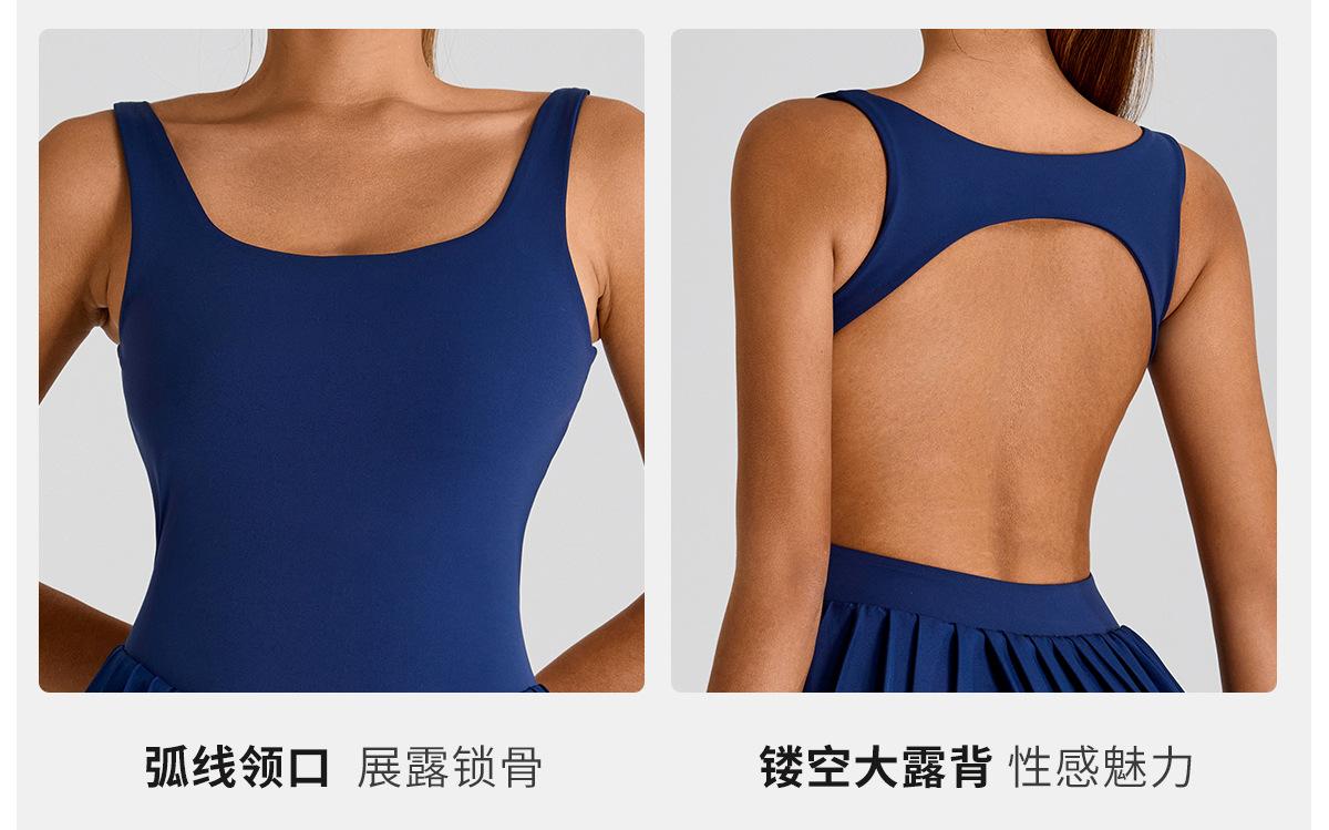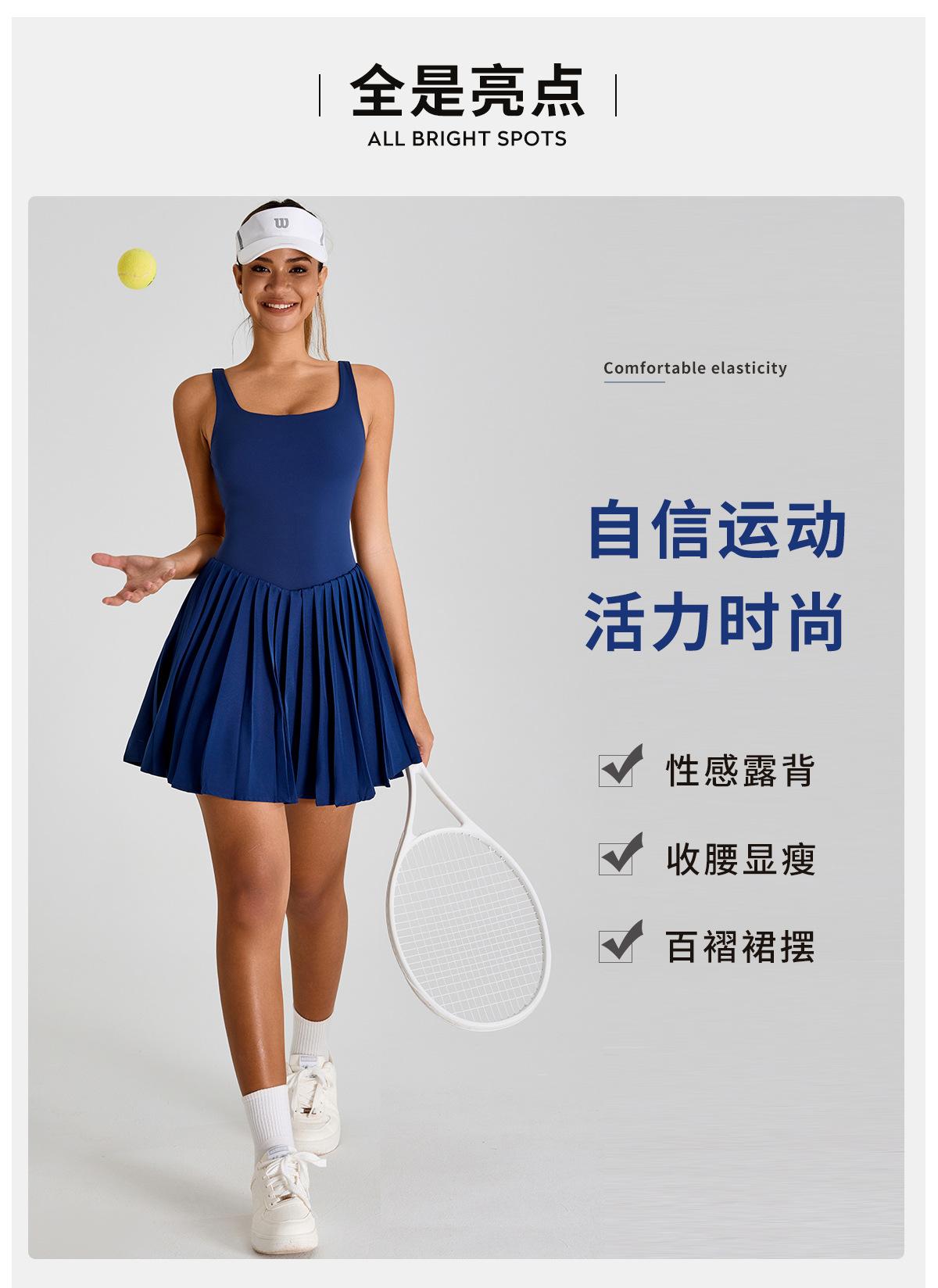 Nuevo Estilo Europeo y Americano Vestido Deportivo Grande sin Espalda con Espalda Hermosa para Mujer Falda de Yoga Plisada Anti-Exposición Falda de Tenis para Fitness al Aire Libre
