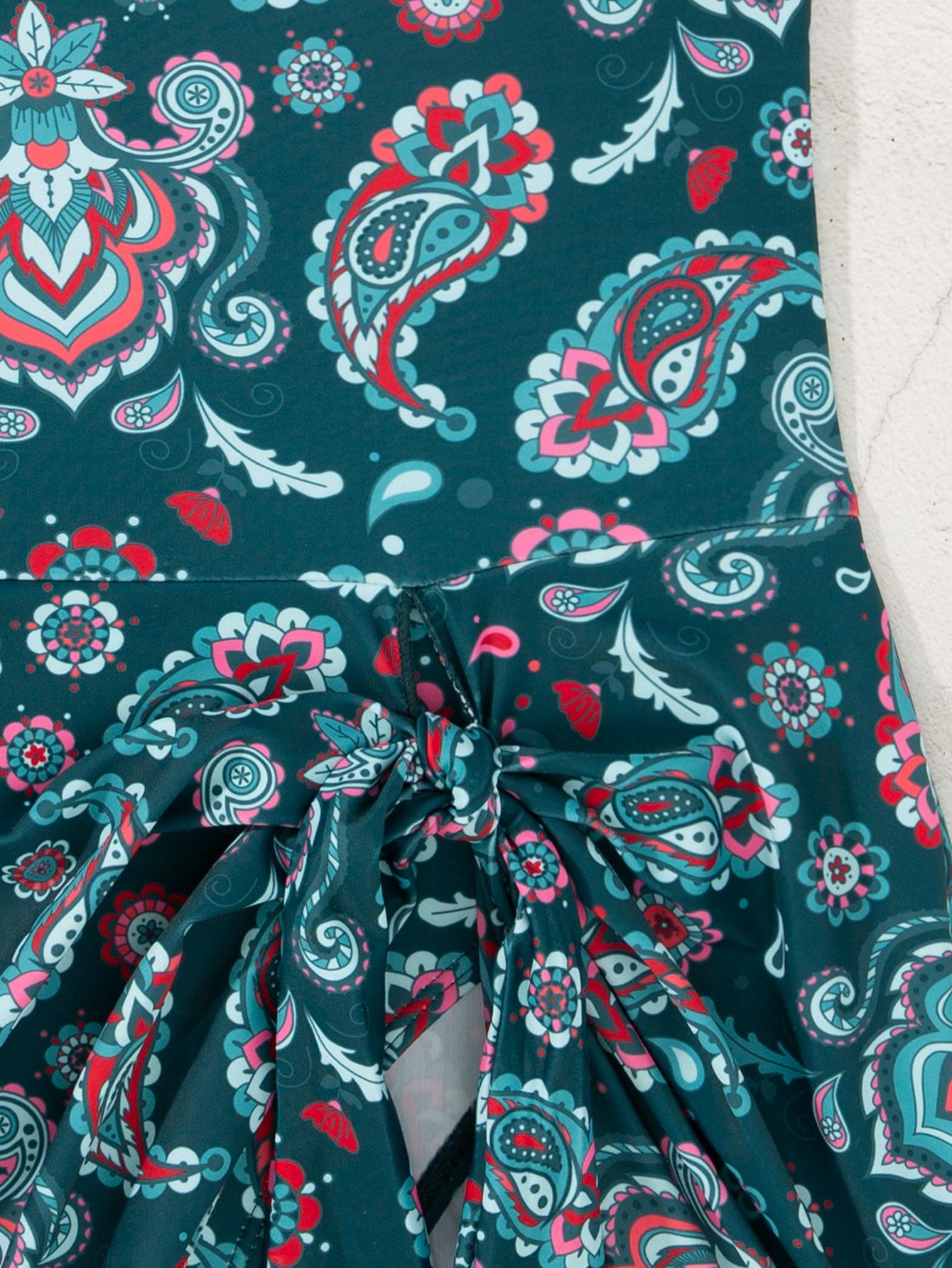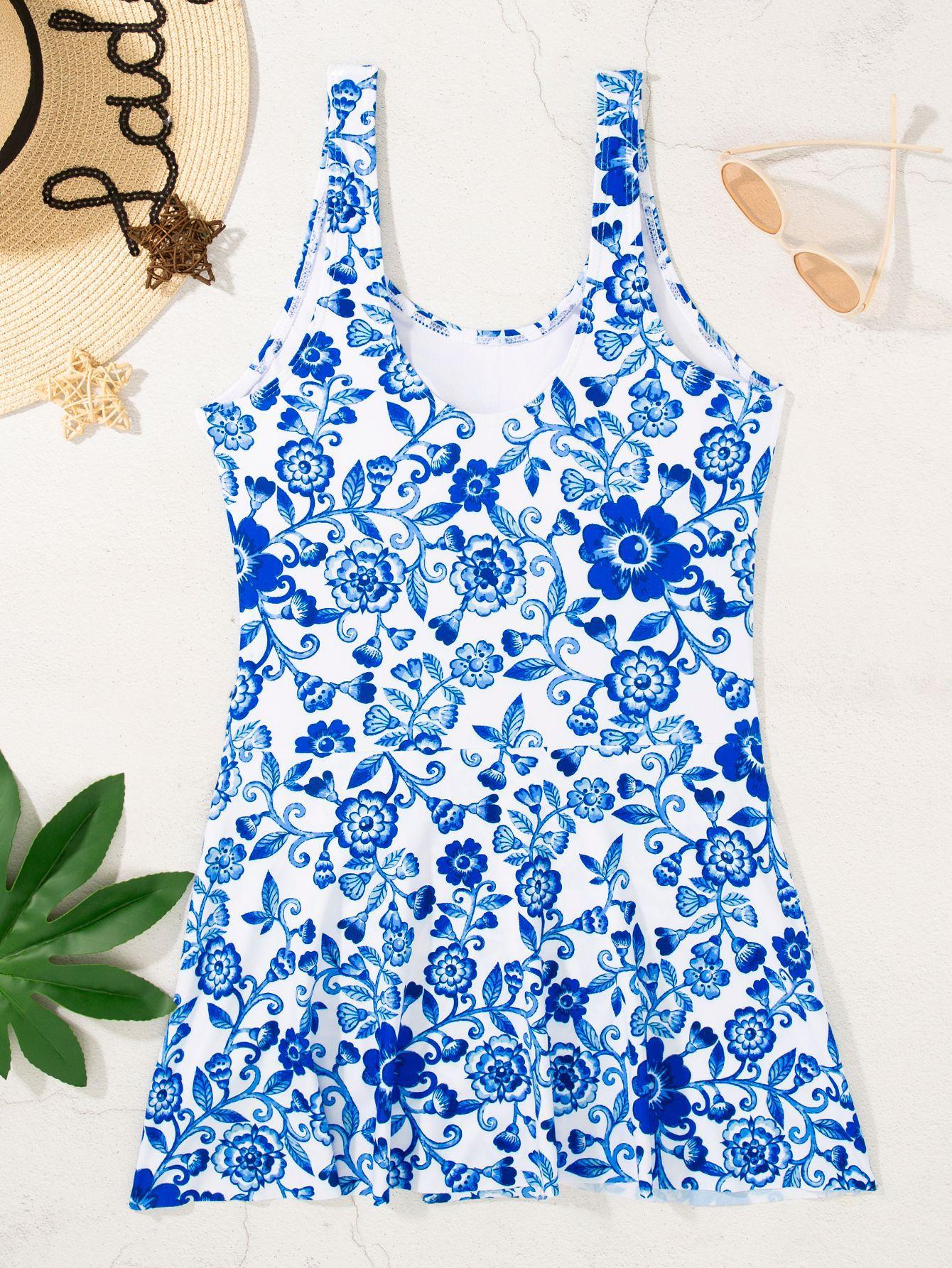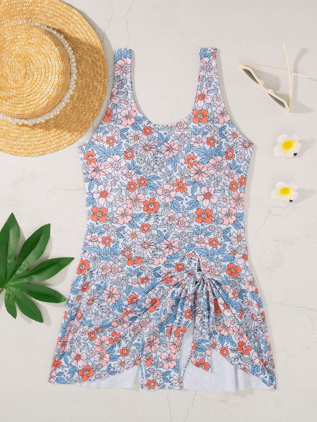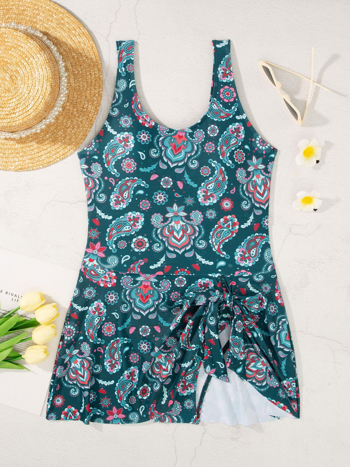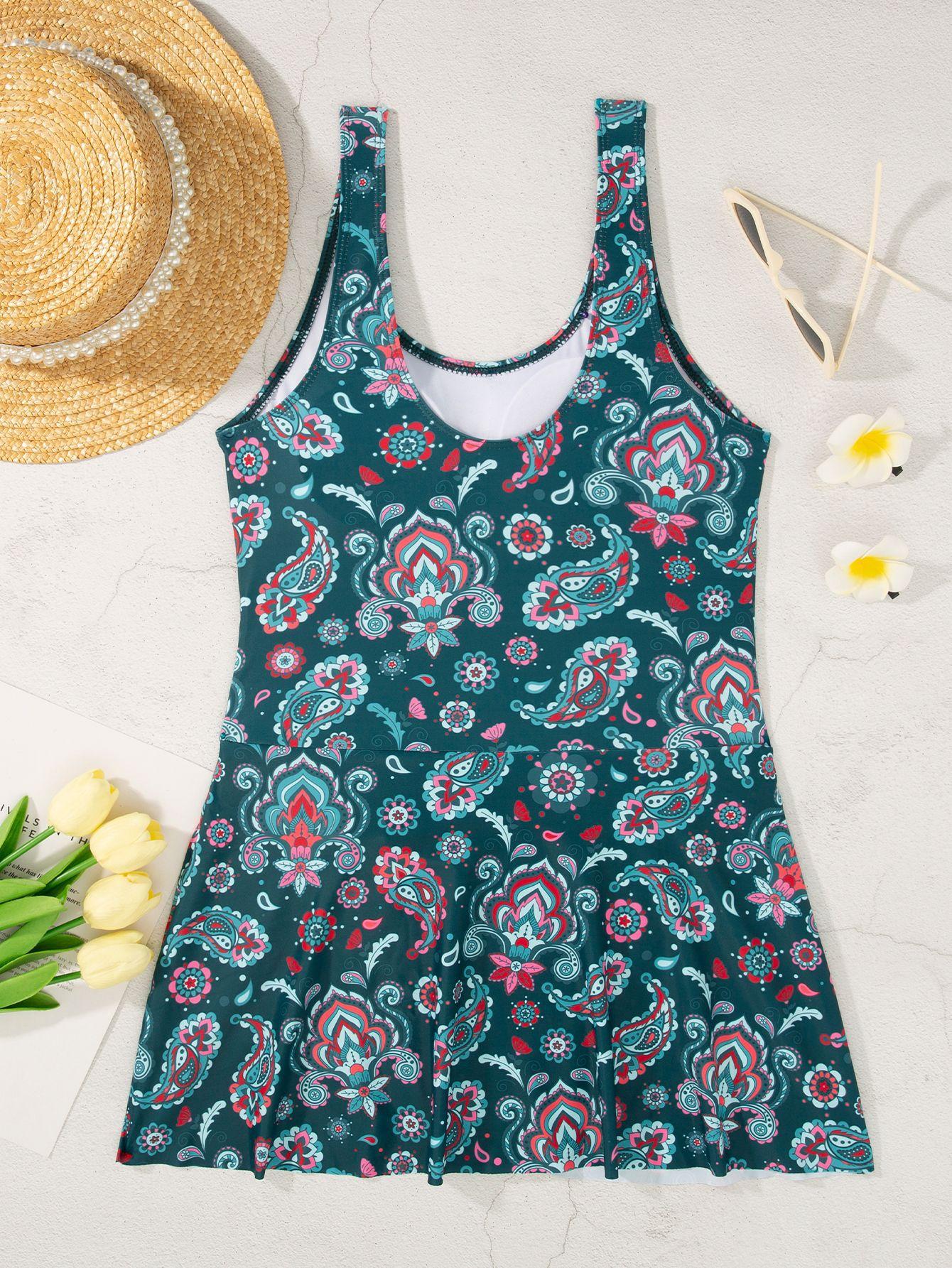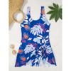 Traje de baño de falda 2025, nuevo traje de baño con estampado europeo y americano, conservador, que cubre el vientre, bikini de playa para mujer.