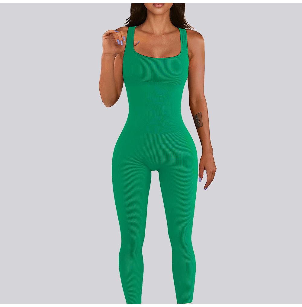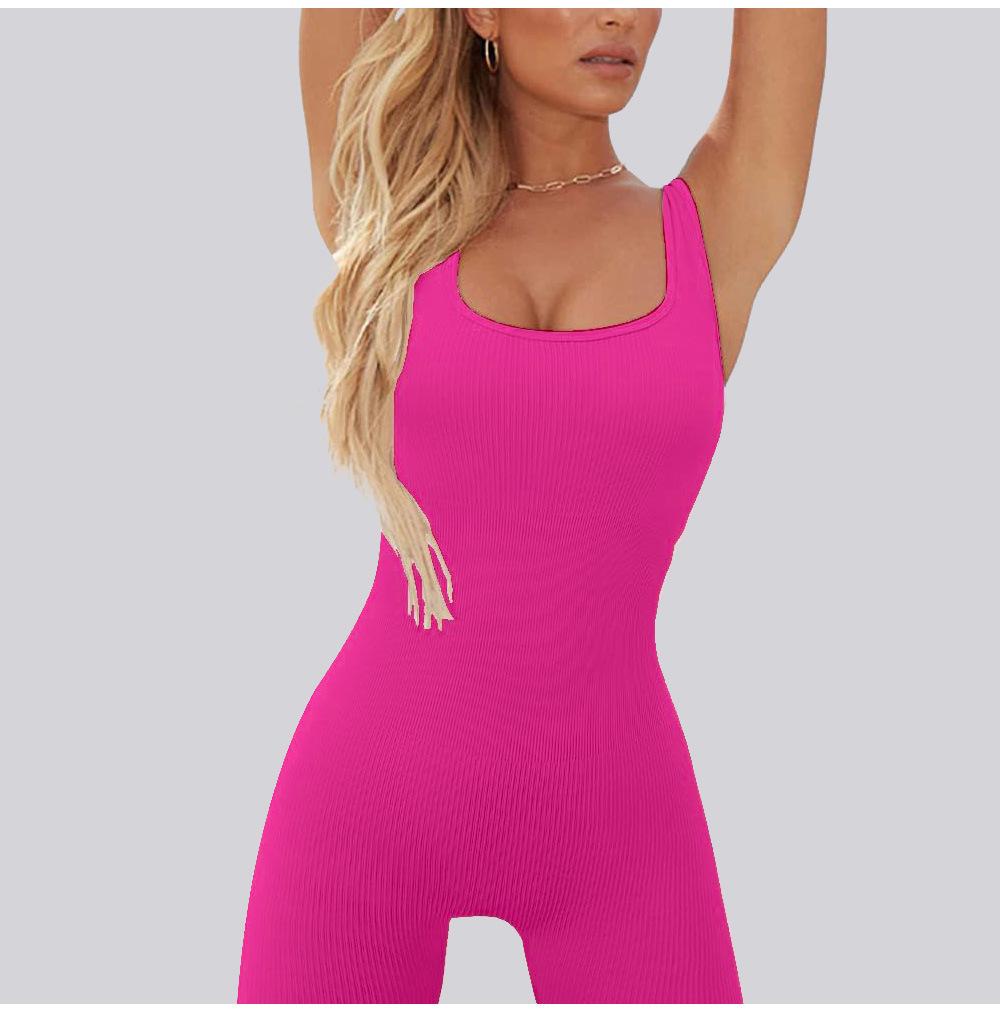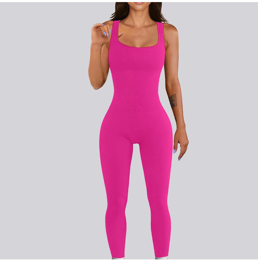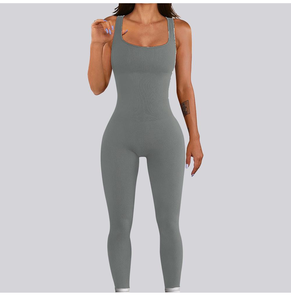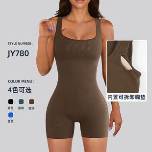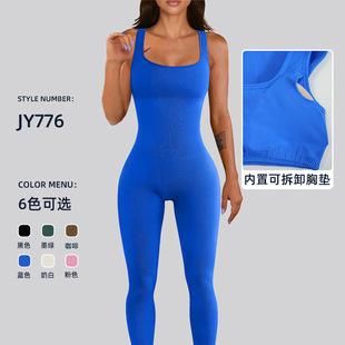 Mono europeo y americano sin almohadilla en el pecho de una sola capa, tirantes anchos, pantalones ajustados con hilo, traje de fitness para yoga