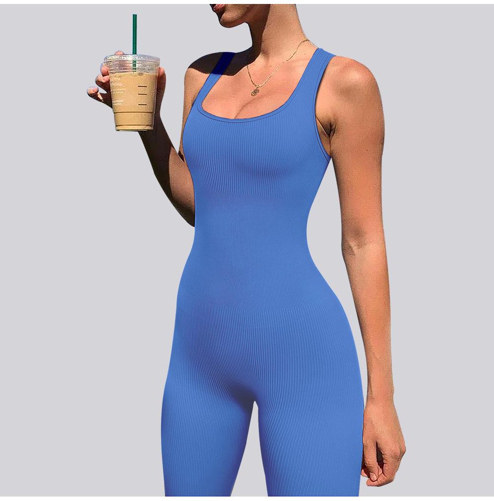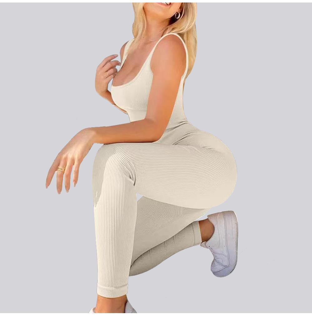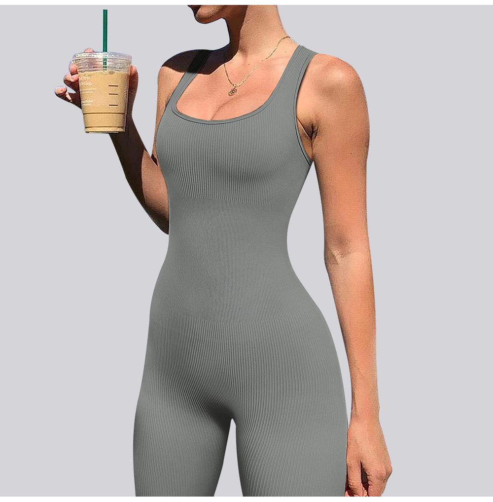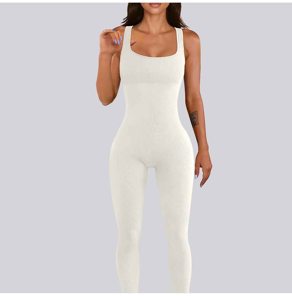 Mono europeo y americano sin almohadilla en el pecho de una sola capa, tirantes anchos, pantalones ajustados con hilo, traje de fitness para yoga