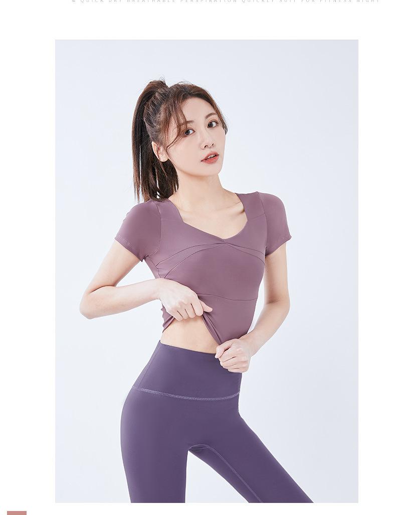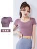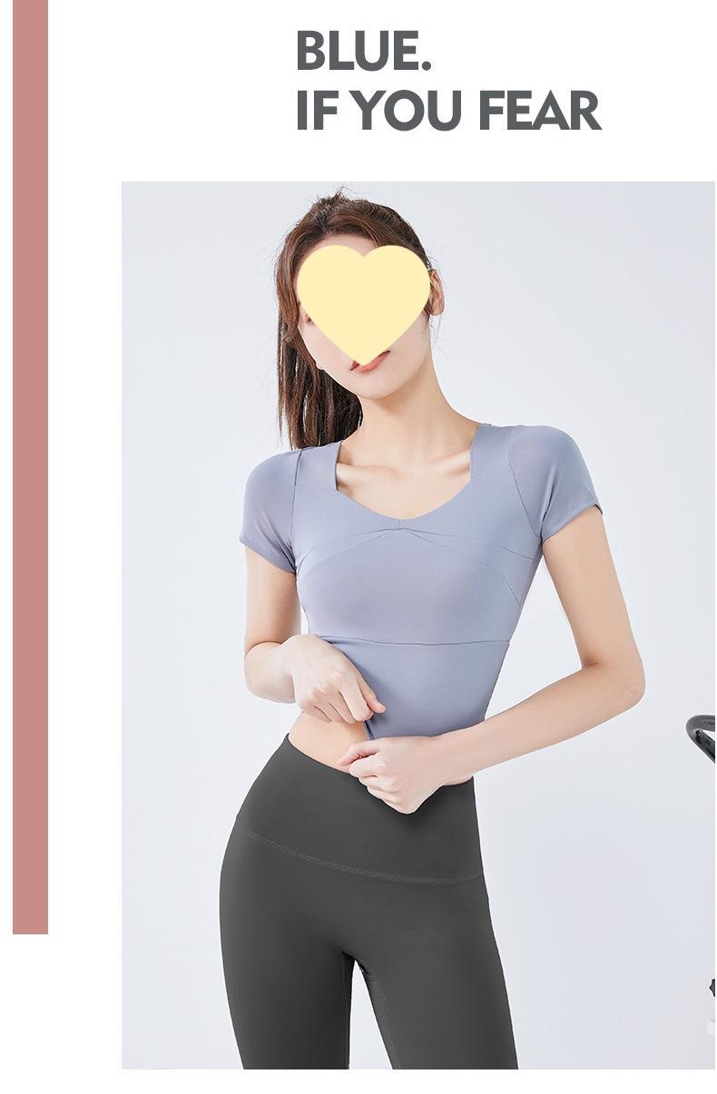 Ropa de Yoga para Mujer con Almohadillas en el Pecho, Tops Deportivos de Manga Corta de Secado Rápido para Correr y Fitness, Trajes Ajustados Finos de Verano Nuevos, Nuevos Estilos