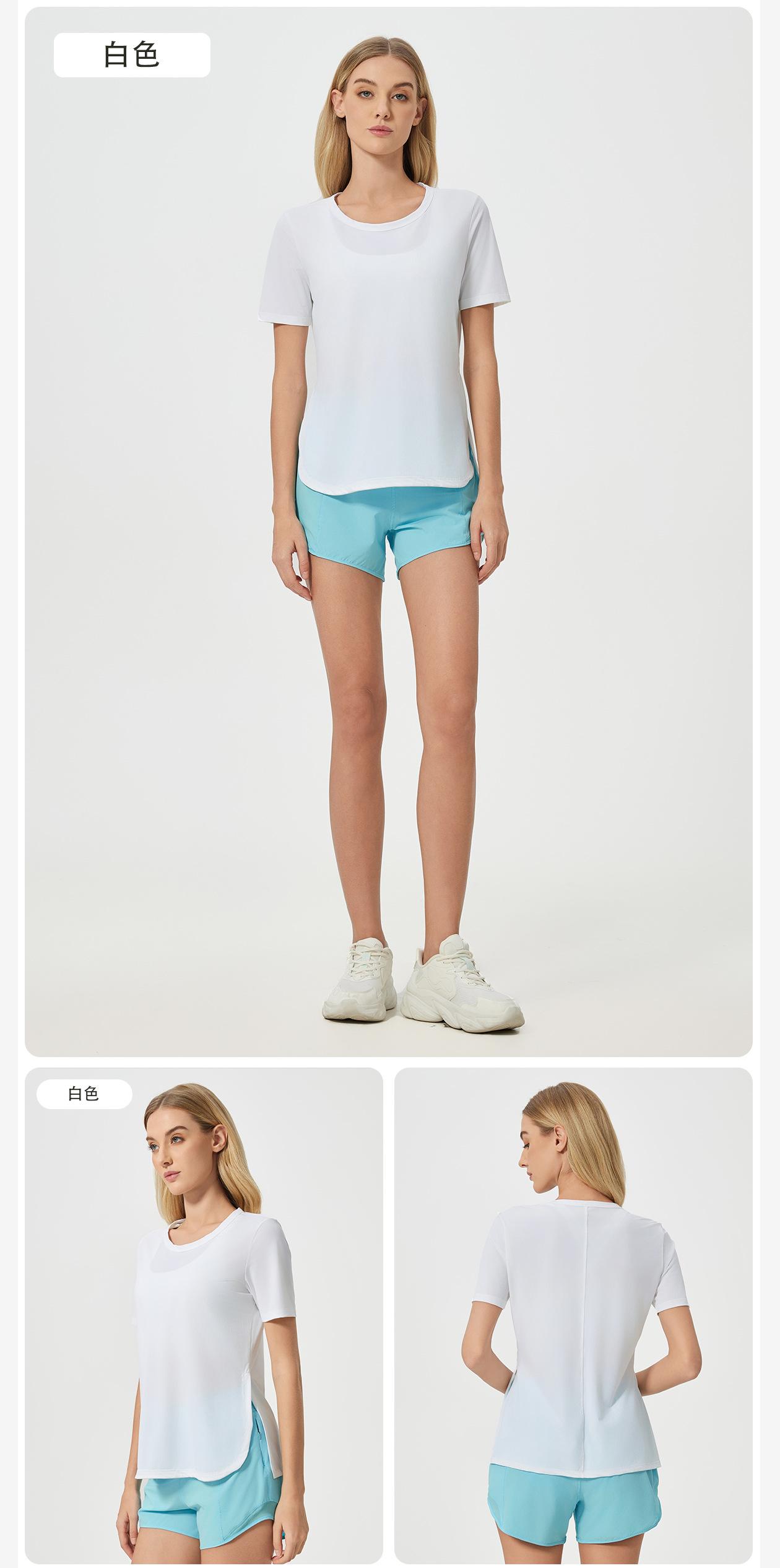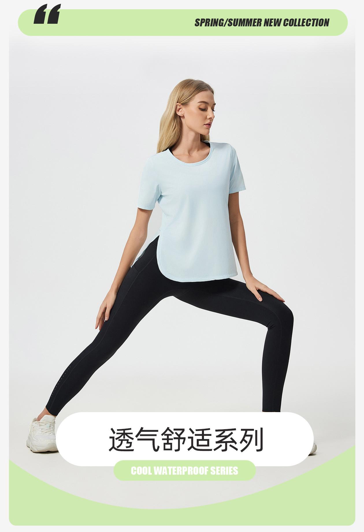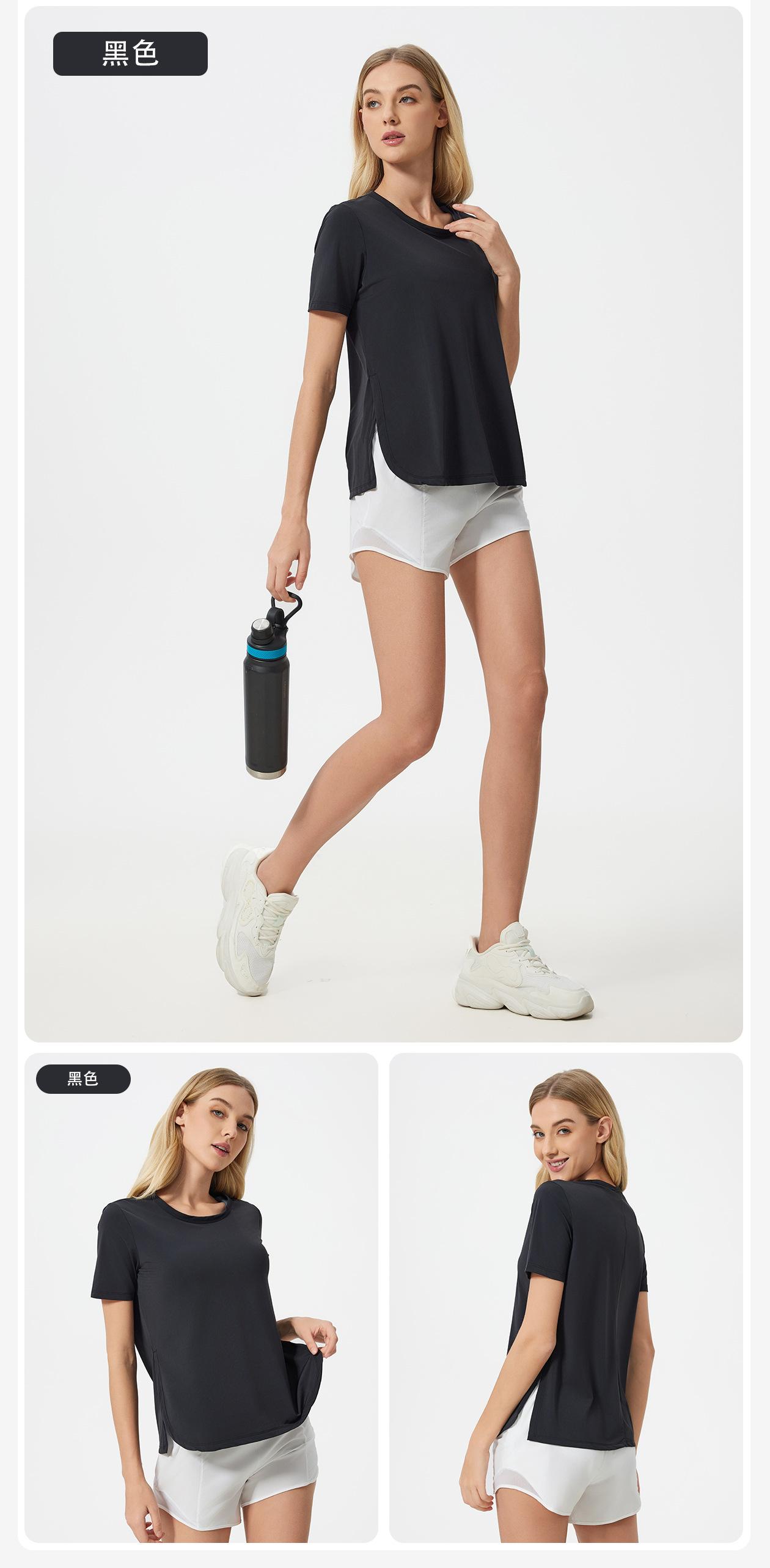 Top de yoga holgado y transpirable de verano para mujer, con abertura lateral, de secado rápido, para correr y fitness, de manga corta DSS125
