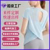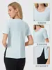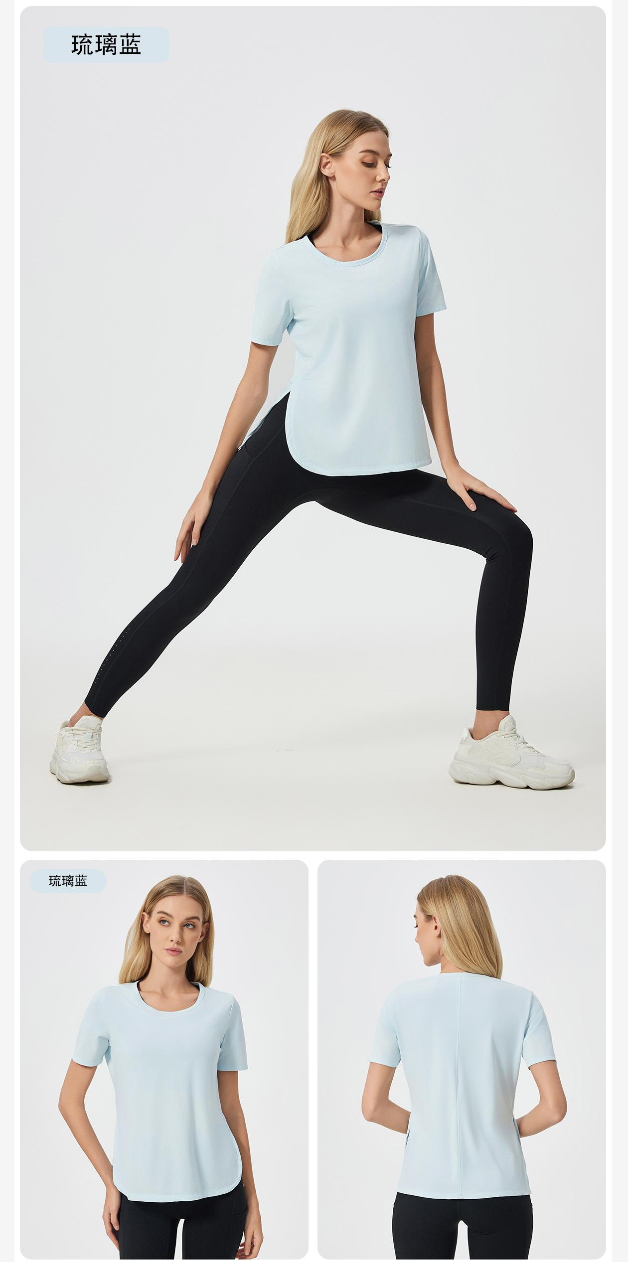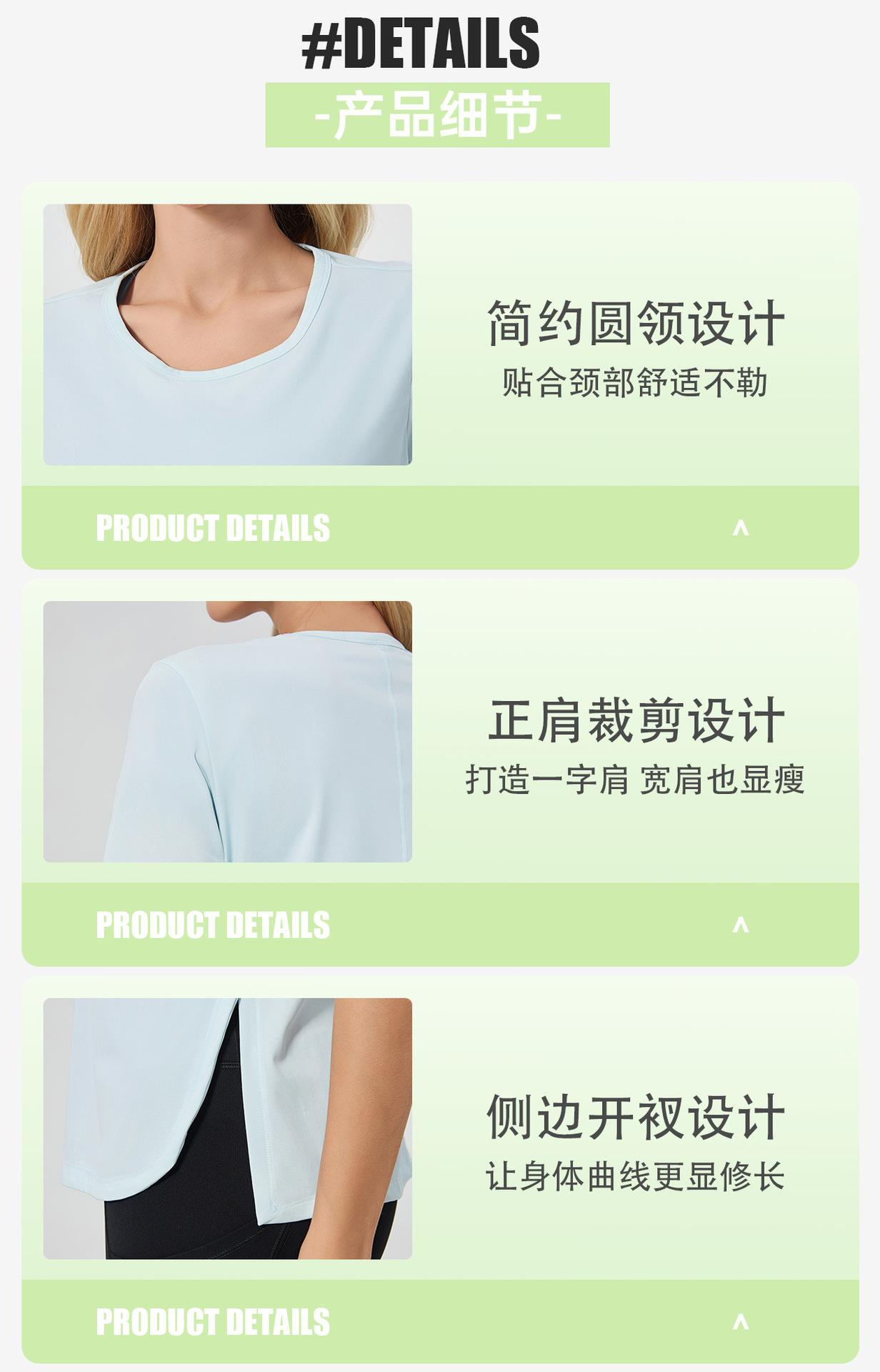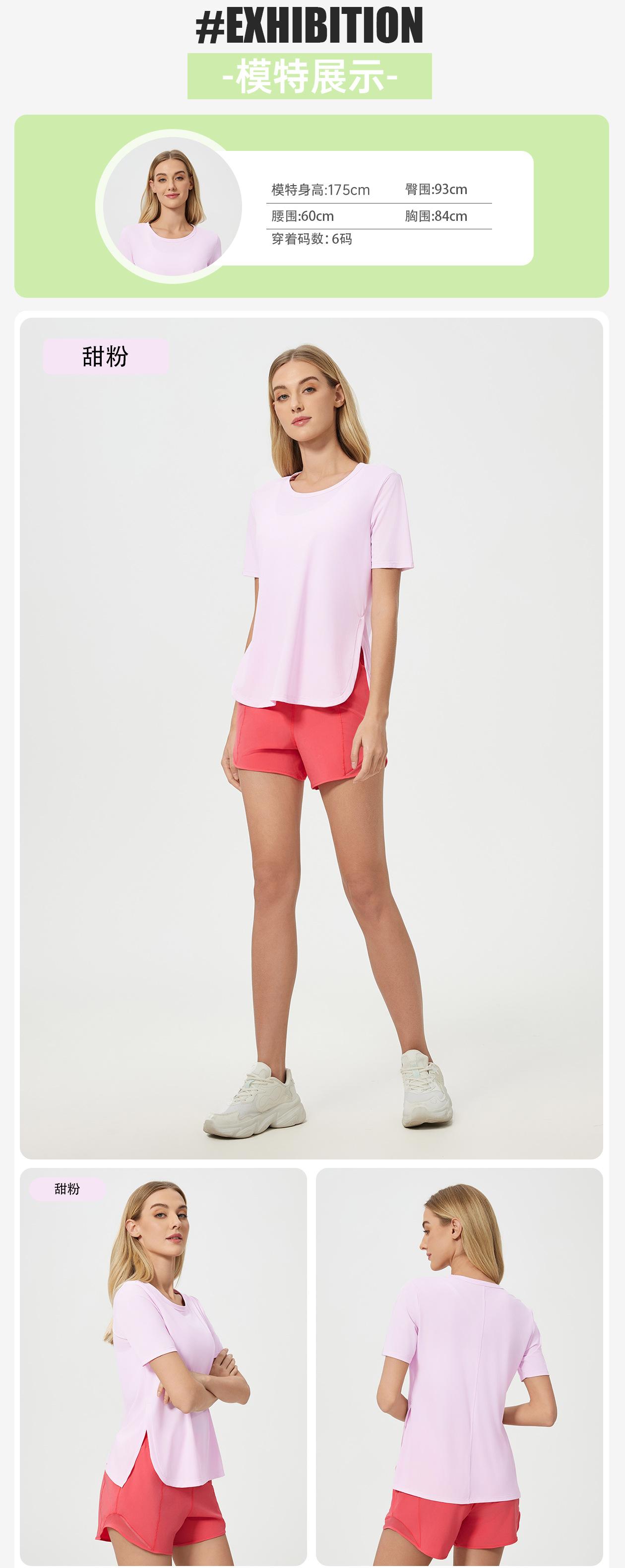 Top de yoga holgado y transpirable de verano para mujer, con abertura lateral, de secado rápido, para correr y fitness, de manga corta DSS125