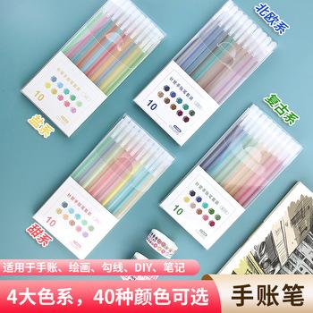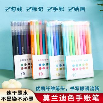 Juego de bolígrafos de fibra de 10 colores de secado rápido, venta al por mayor, Morandi, serie de colores, bolígrafo con gancho para pintar a color, para estudiantes, transfronterizos |