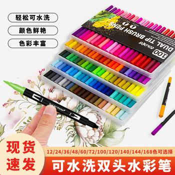 Bolígrafo de acuarela de doble punta con borde cruzado, color suave, para estudiantes de arte, juego especial de caligrafía y pintura, bolígrafo de gancho lavable, venta al por mayor |