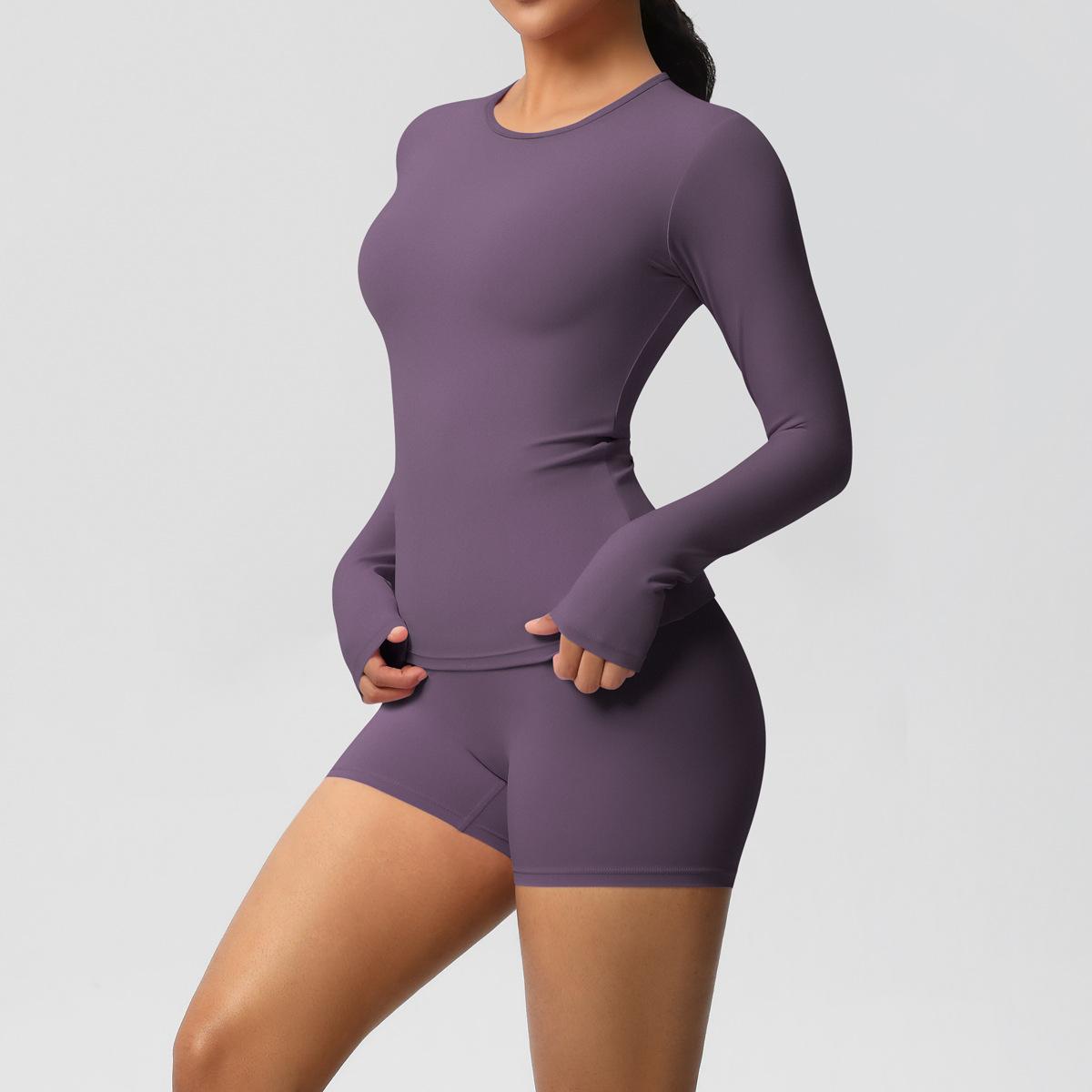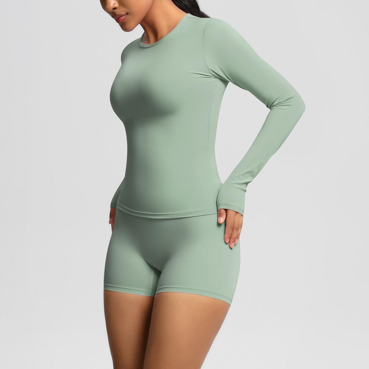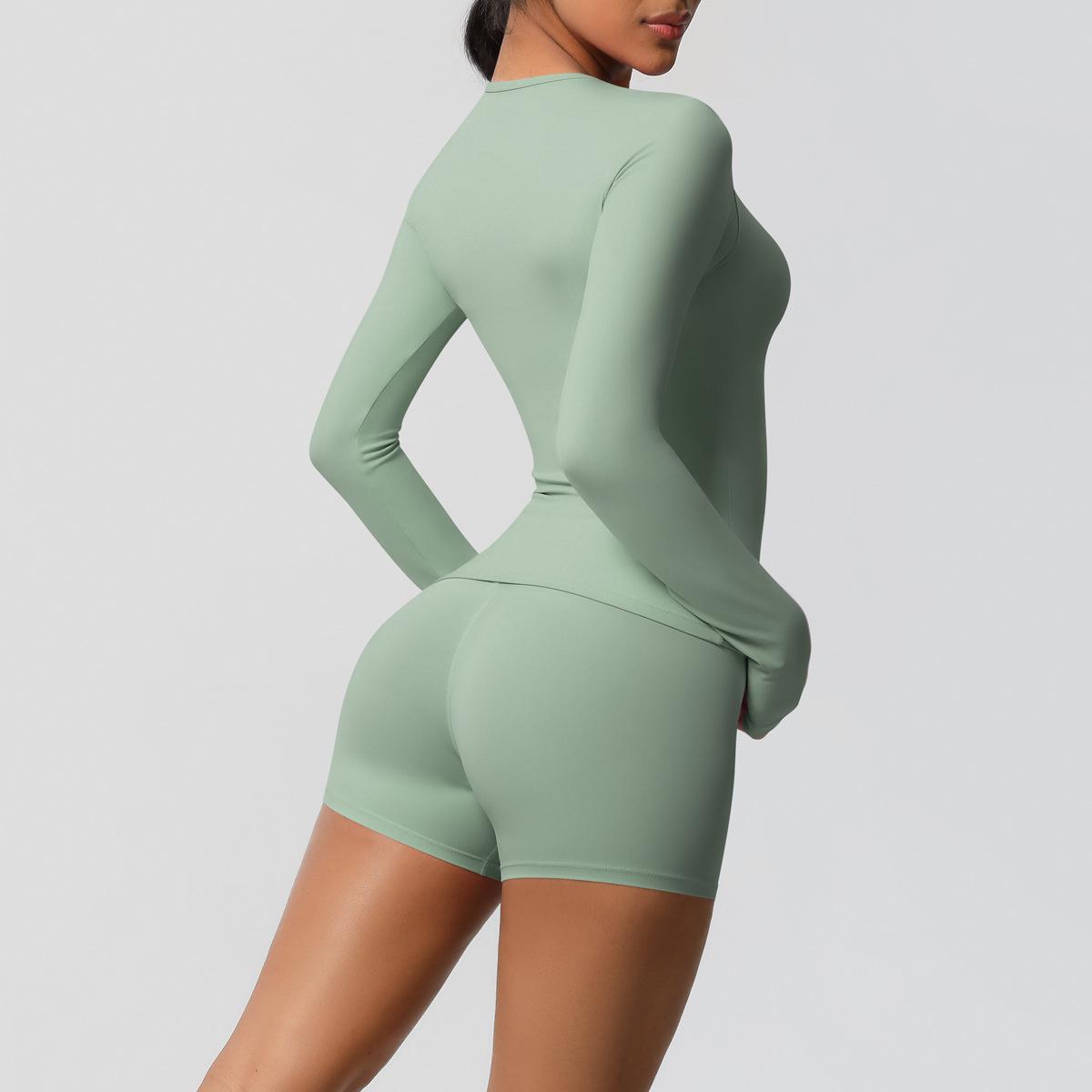 Conjunto de dos piezas para mujer, ropa deportiva de yoga, correr y fitness, ajustado, largo, de doble cara, color sólido, con borde cruzado