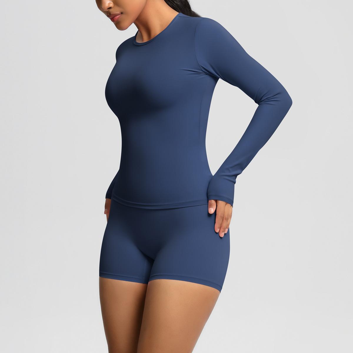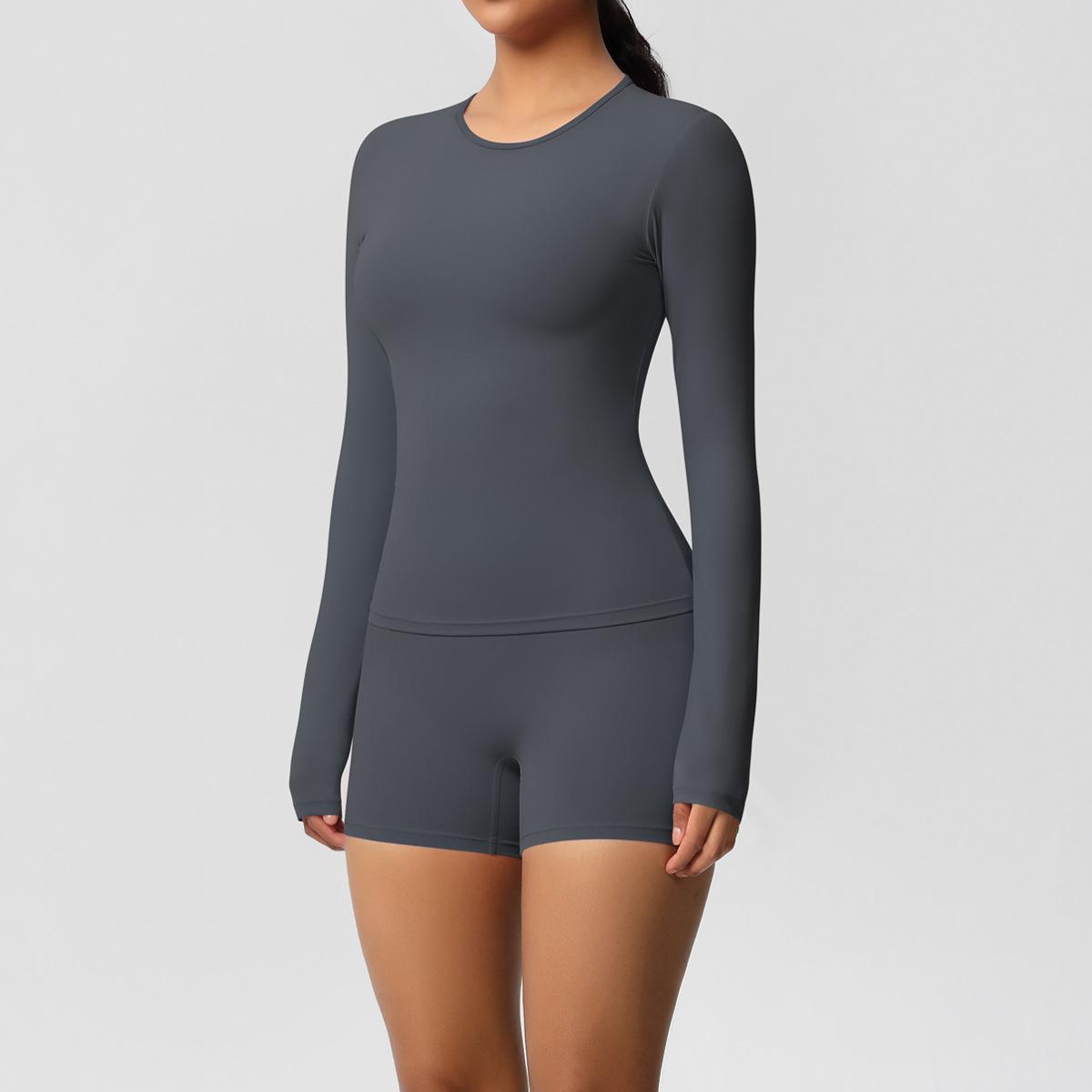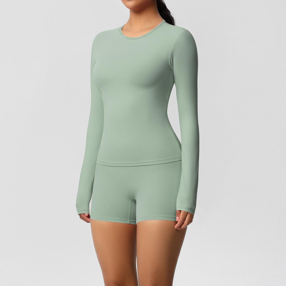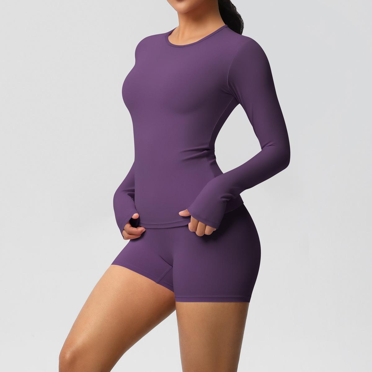 Conjunto de dos piezas para mujer, ropa deportiva de yoga, correr y fitness, ajustado, largo, de doble cara, color sólido, con borde cruzado