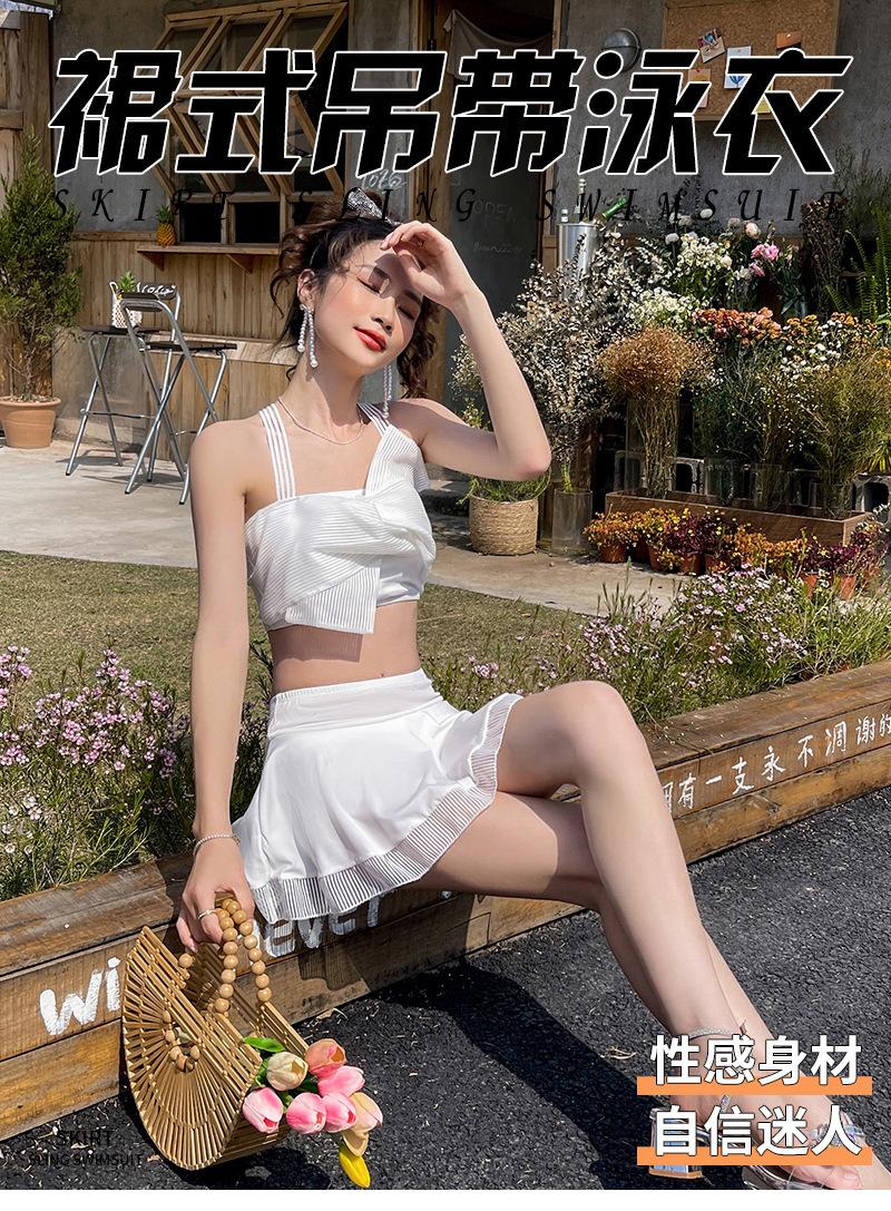 Nuevo bikini de falda dividida 2024 traje de baño conservador traje de baño de alta gama para mujer traje de baño de playa delgado al por mayor