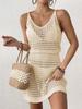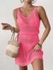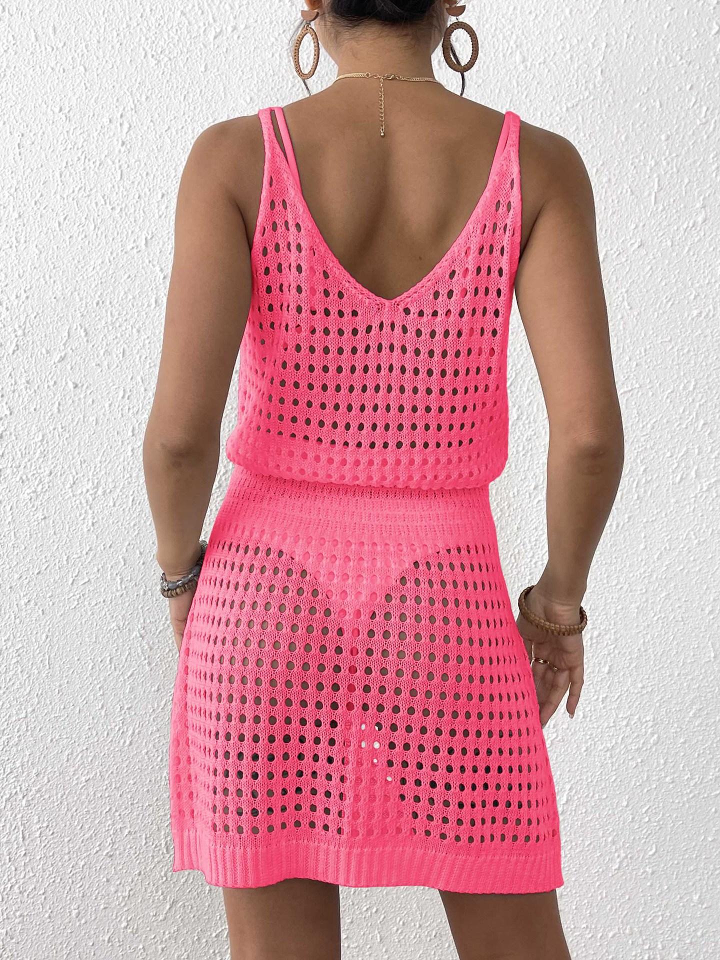 Blusa de mujer 2025, estilo europeo y americano, sexy, de punto, con tirantes, cintura ajustada, escote en V, bikini calado, vestido de playa exterior