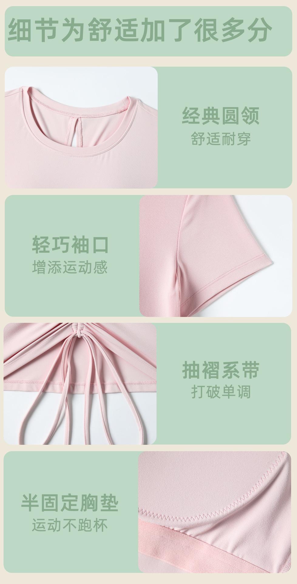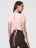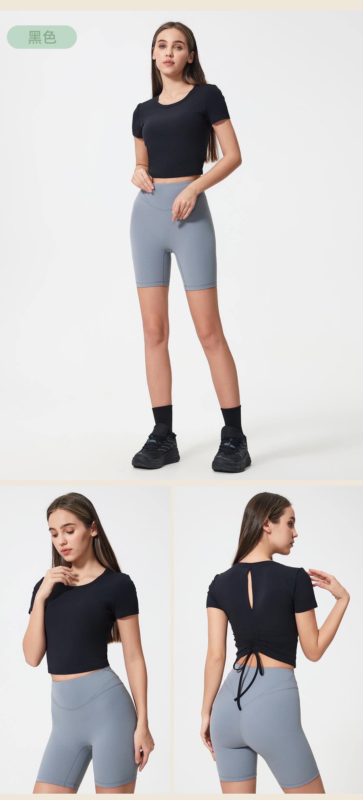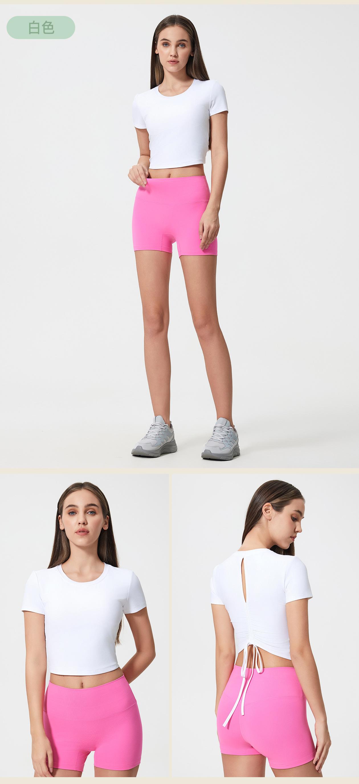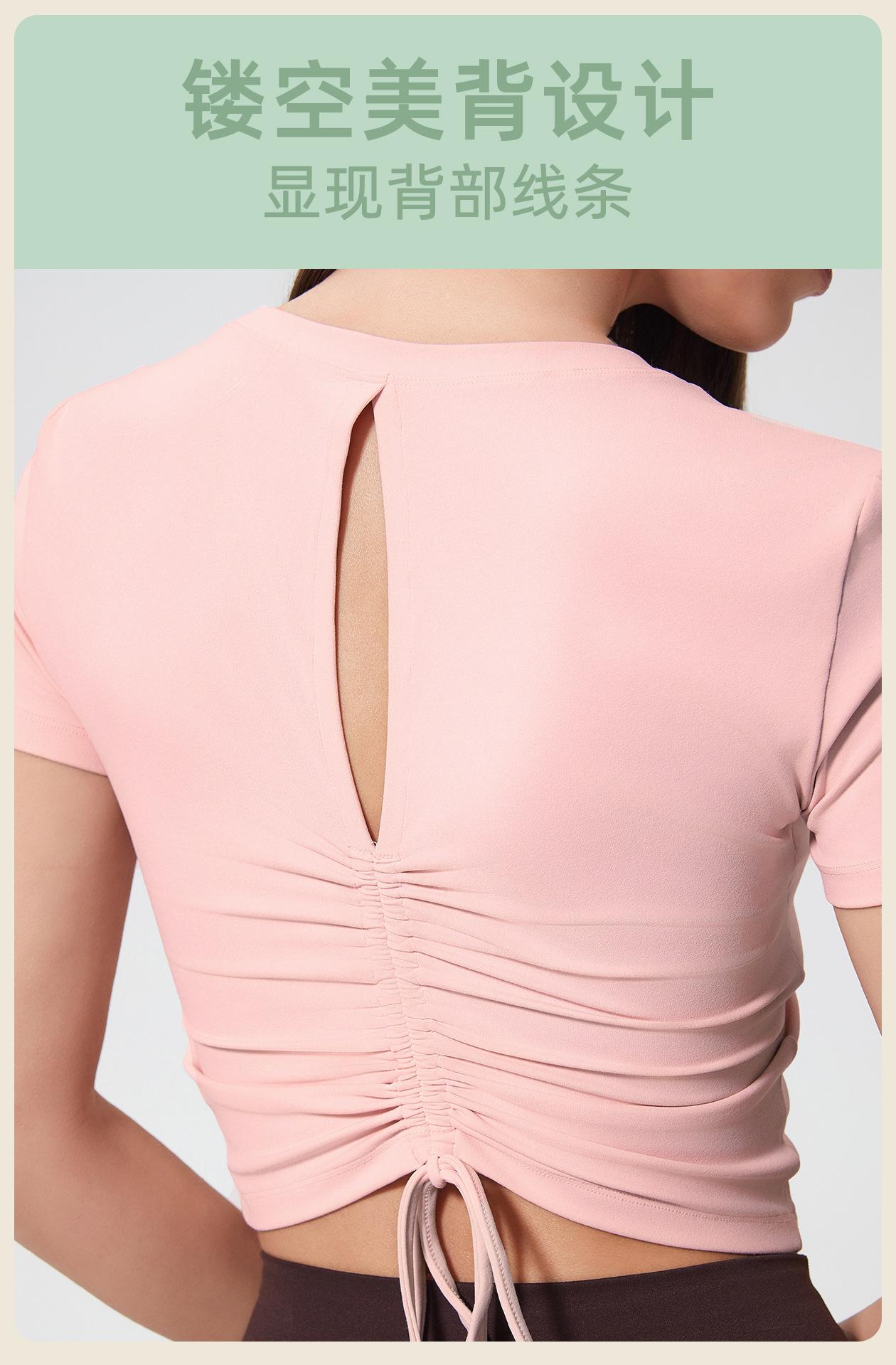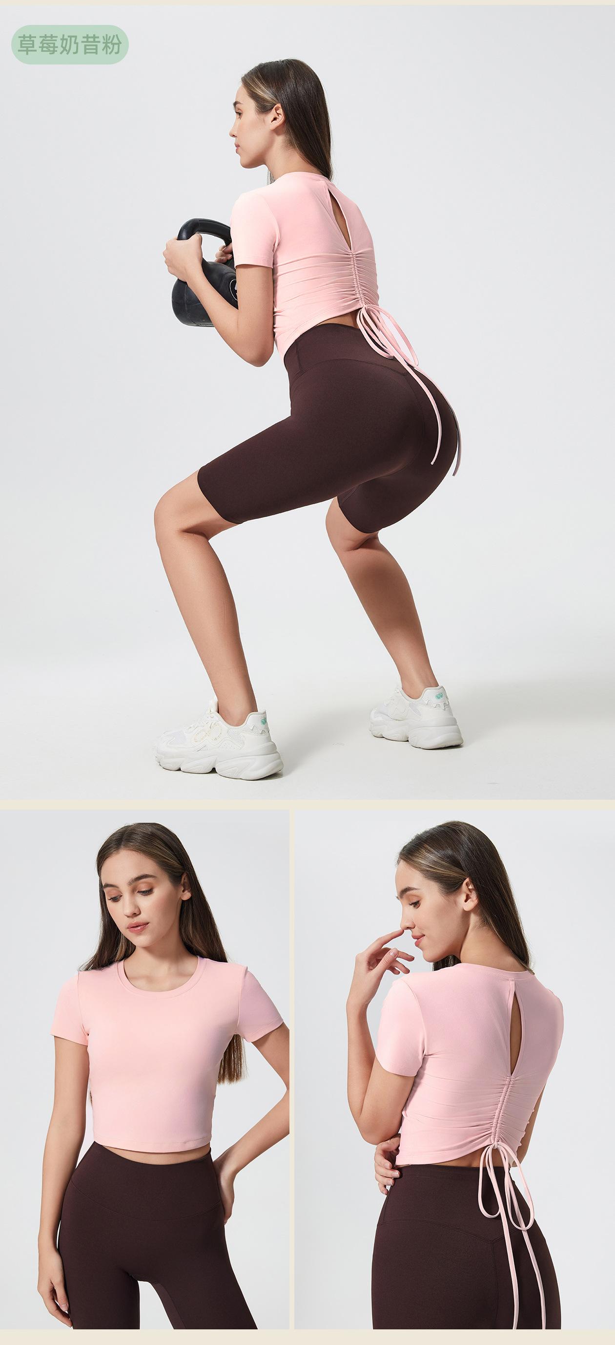 Camiseta deportiva transpirable de manga corta para mujer, con cordón ajustable, copa fija, ajustada, para fitness y yoga, D25061
