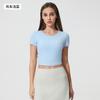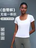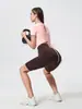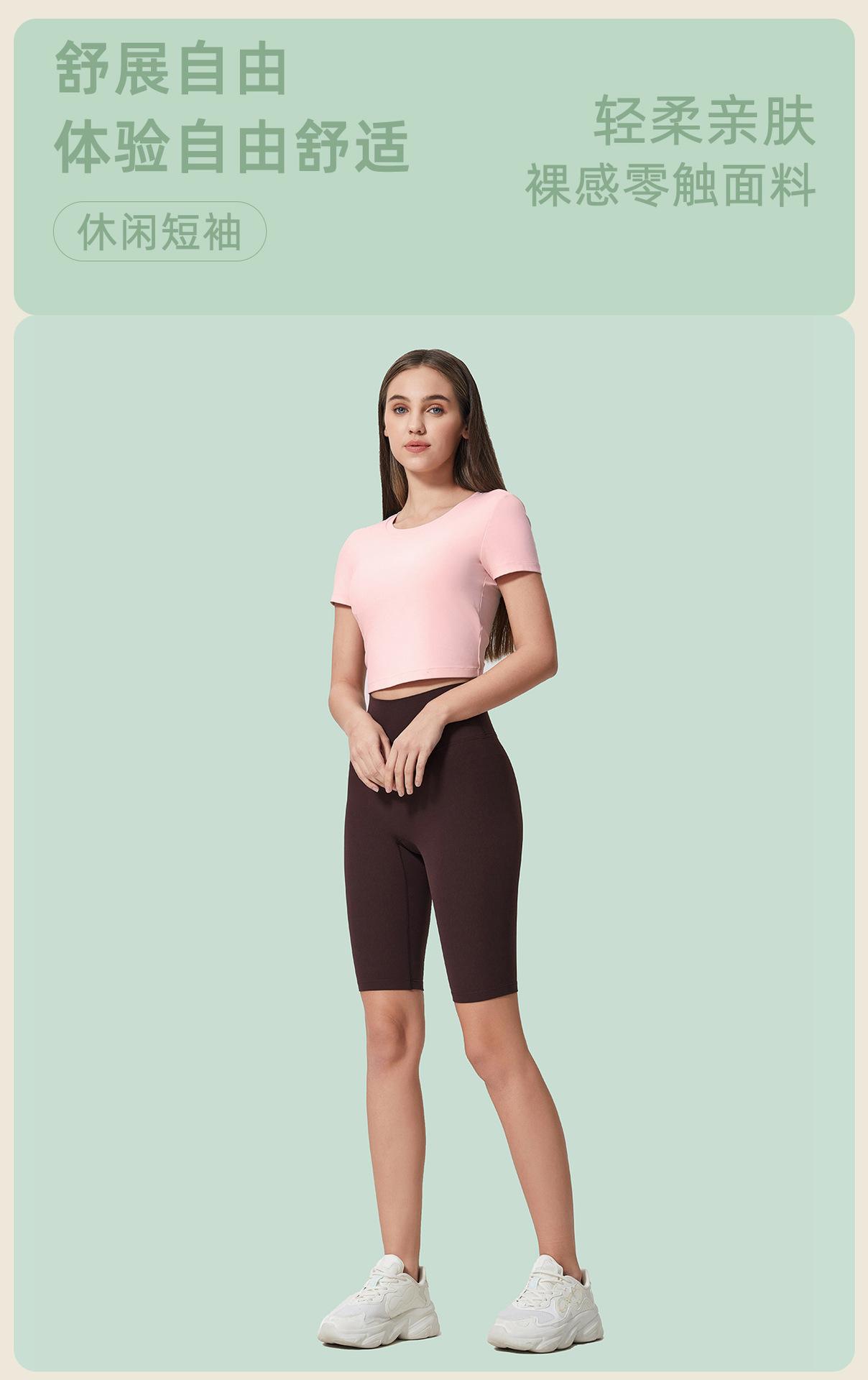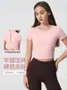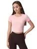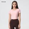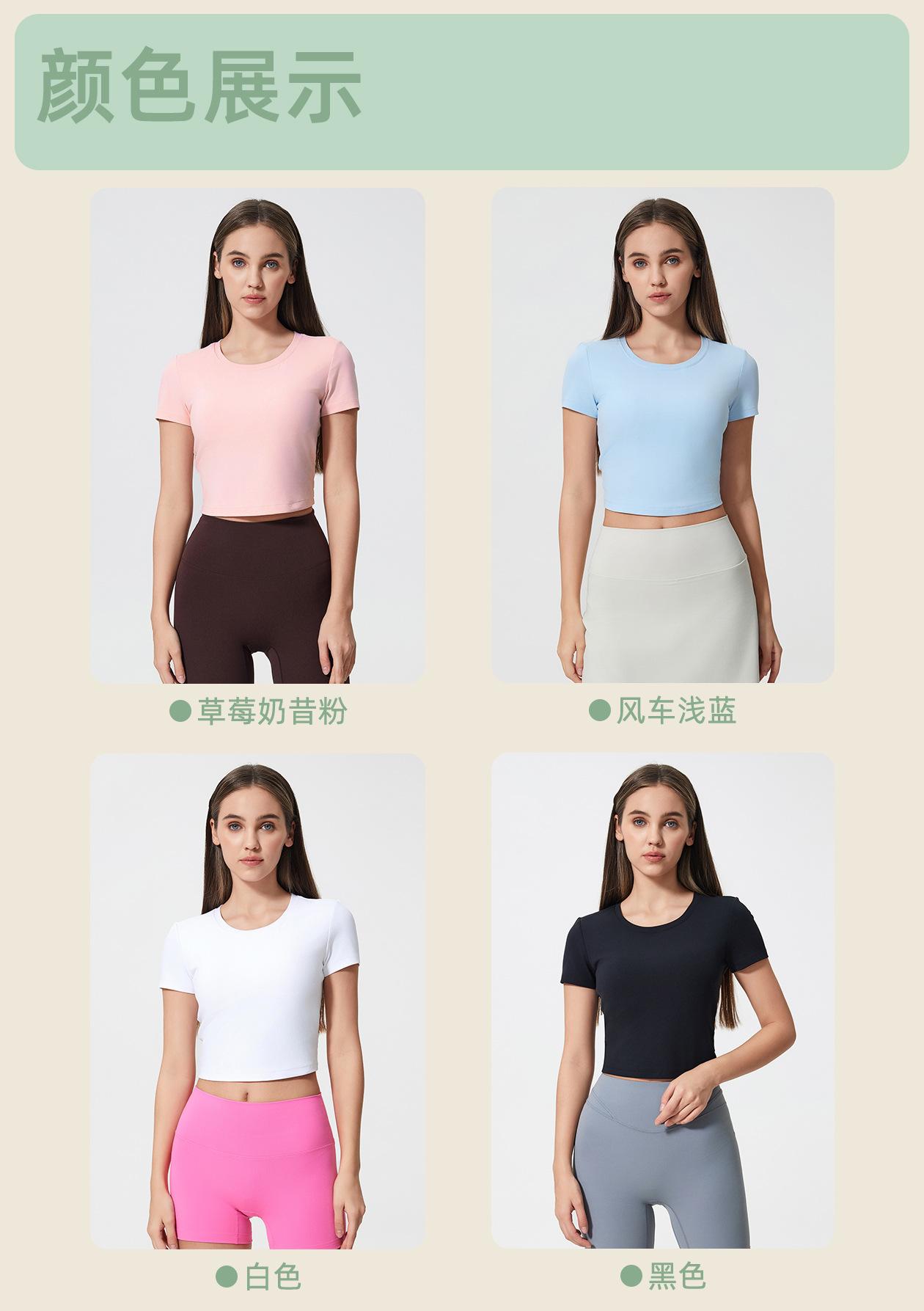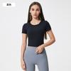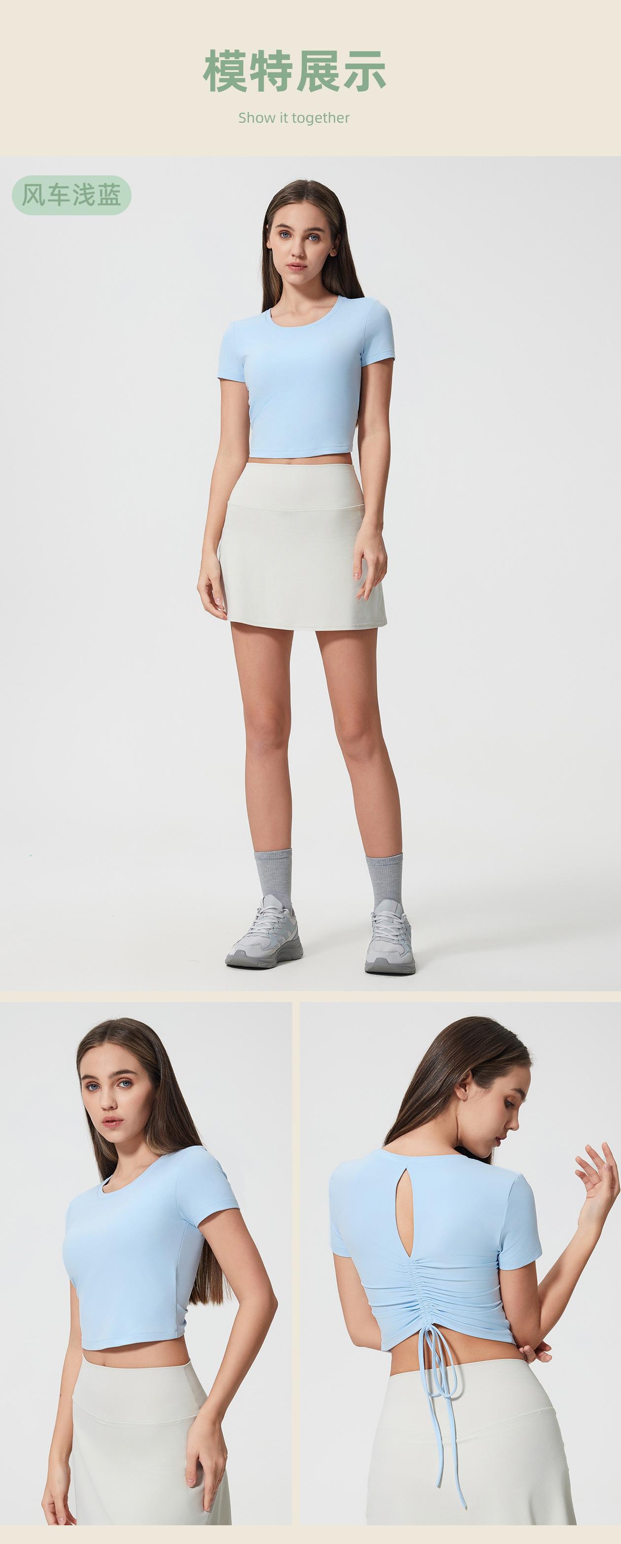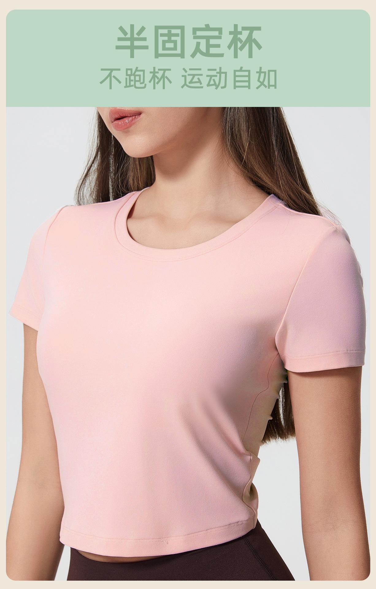 Camiseta deportiva transpirable de manga corta para mujer, con cordón ajustable, copa fija, ajustada, para fitness y yoga, D25061