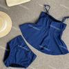 Nuevo traje de baño de estilo coreano sencillo sin tirantes con abertura para mujer, con volantes y abanico de hadas, que cubre el vientre y adelgaza las aguas termales.