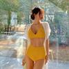 Traje de baño de fábrica de origen 2025 para mujer, nuevo bikini sexy sin espalda europeo y americano de tres puntos, traje de baño dividido para mujer