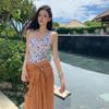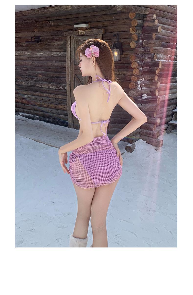 Bikini con tirantes y falda dividida morada de taro, traje de baño sexy de chica sexy y sensual, con escote pequeño, 2025